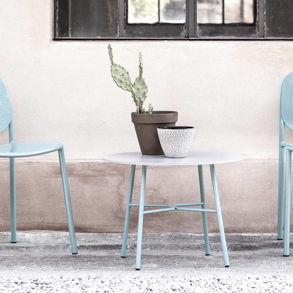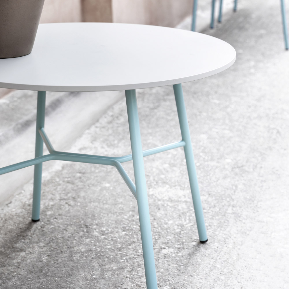 Mesa de centro redonda para exterior em HPL e metal pintado Made in Italy.