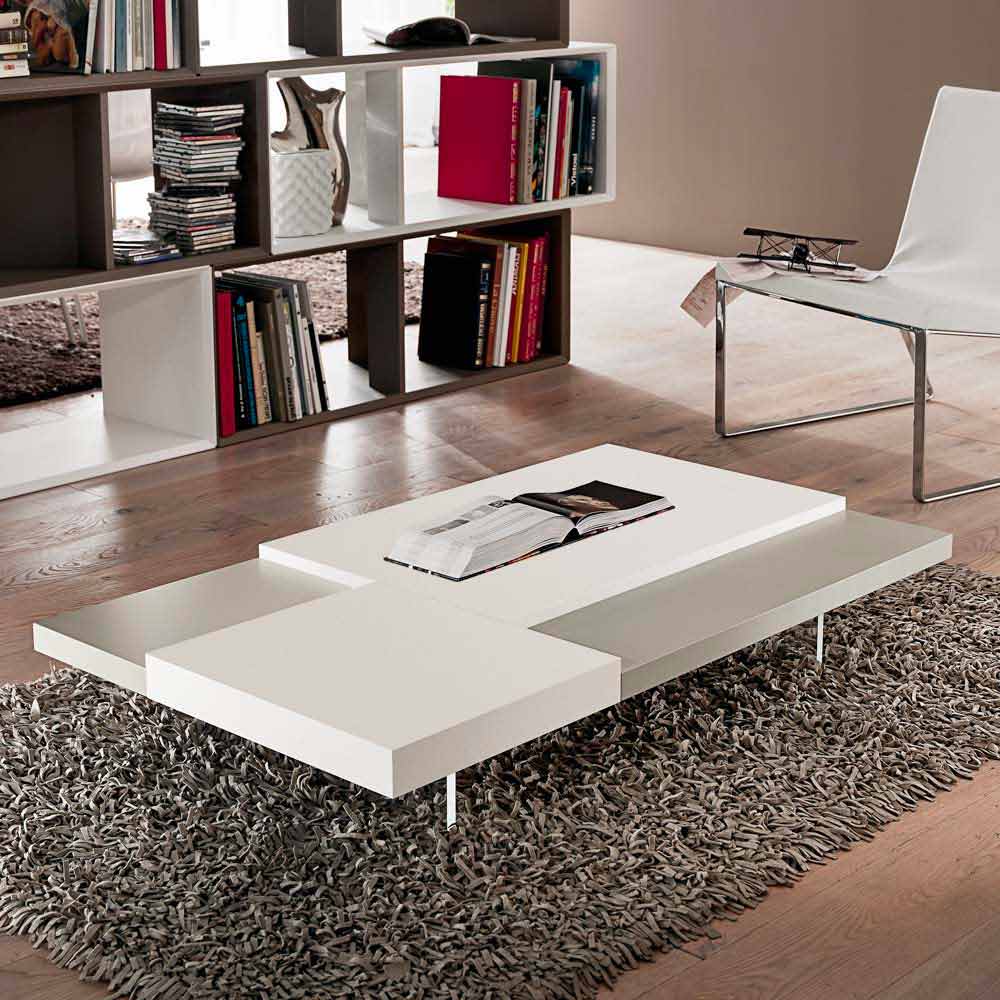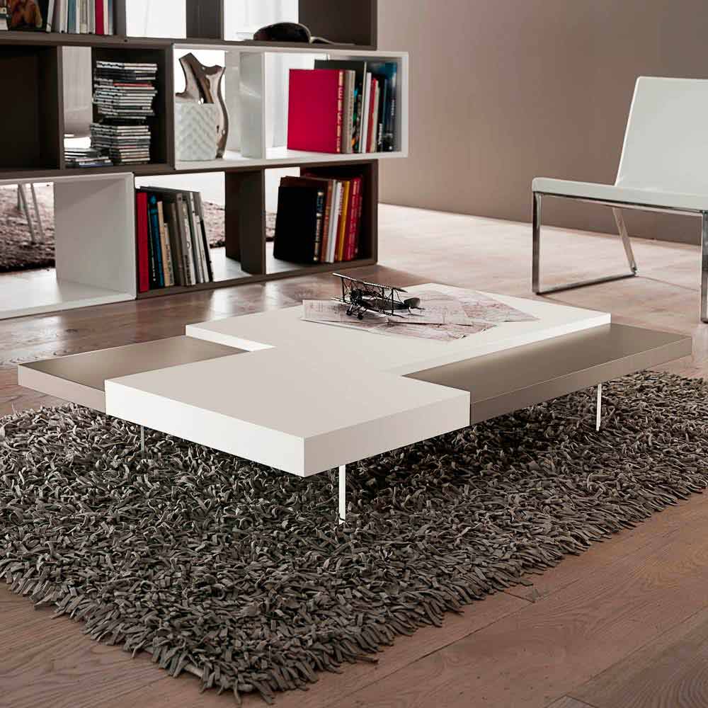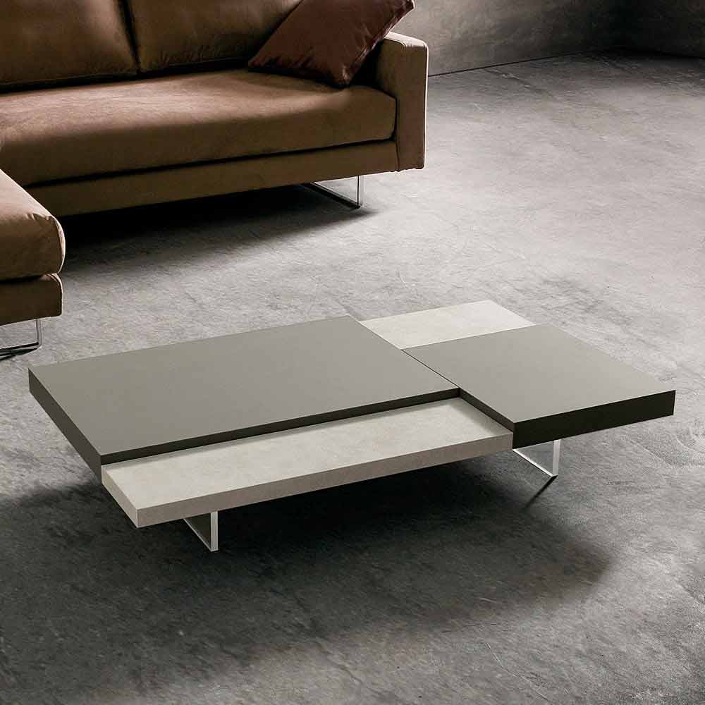 em polimetilmetacrilato transparente . Em qualquer sala de estar é imprescindível a presença de uma mesa de centro que, para além de representar uma superfície de apoio prática e funcional, confere harmonia ao mobiliário e completa a sua estética graças a linhas e formas cativantes e originais. Este móvel reúne todas as características fundamentais de uma mesa de centro perfeita, revelando-se uma excelente ideia para quem gosta de decorar os seus espaços com elementos de estilo simples mas impactantes. A forma particular dos tampos colocados em diferentes alturas desempenha um papel importante no design do produto, pois oferece um jogo exclusivo de contrastes. Além disso, o