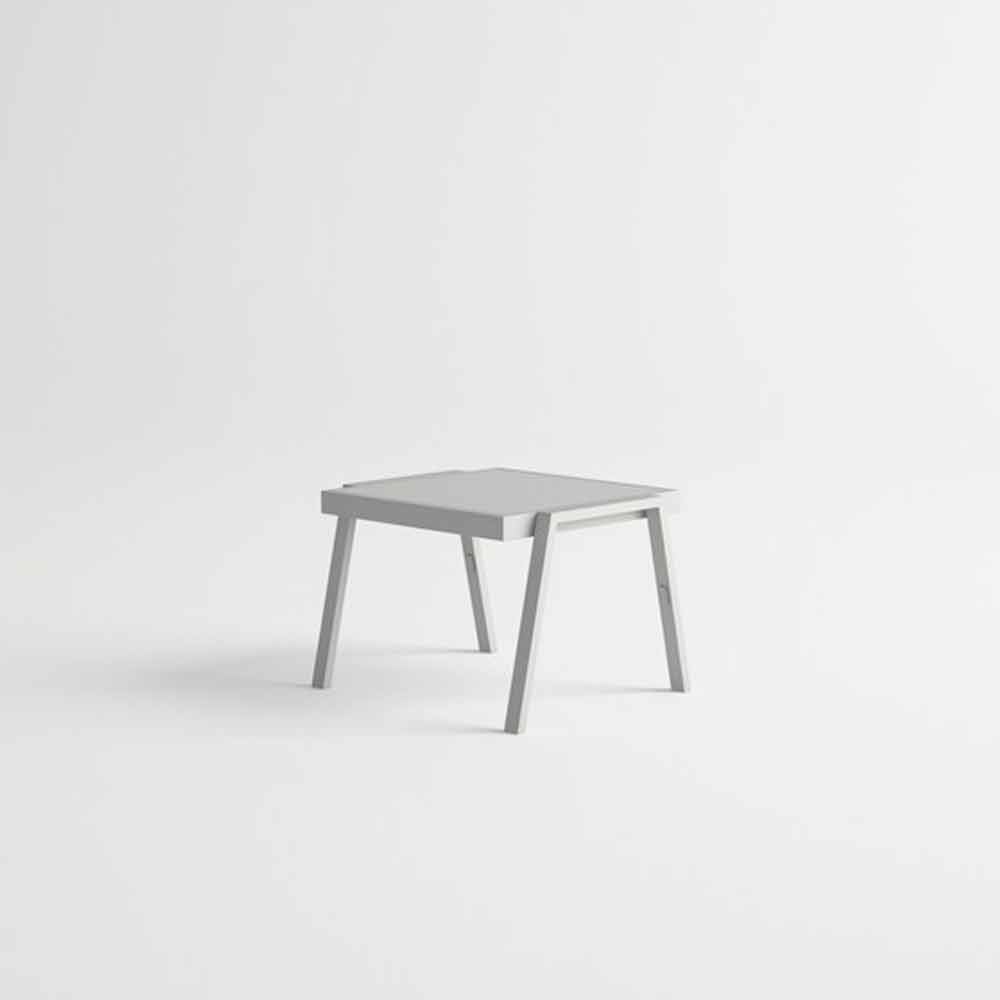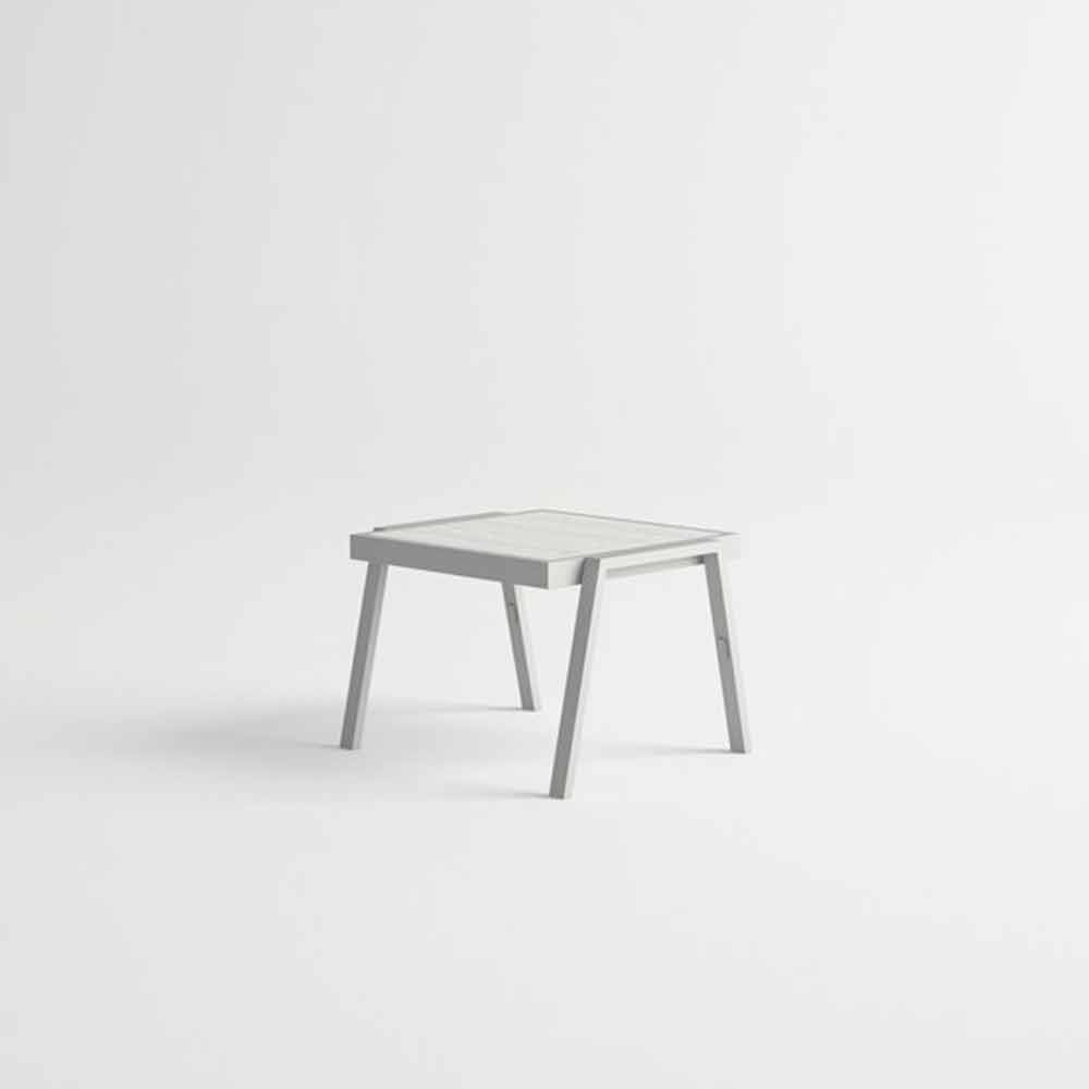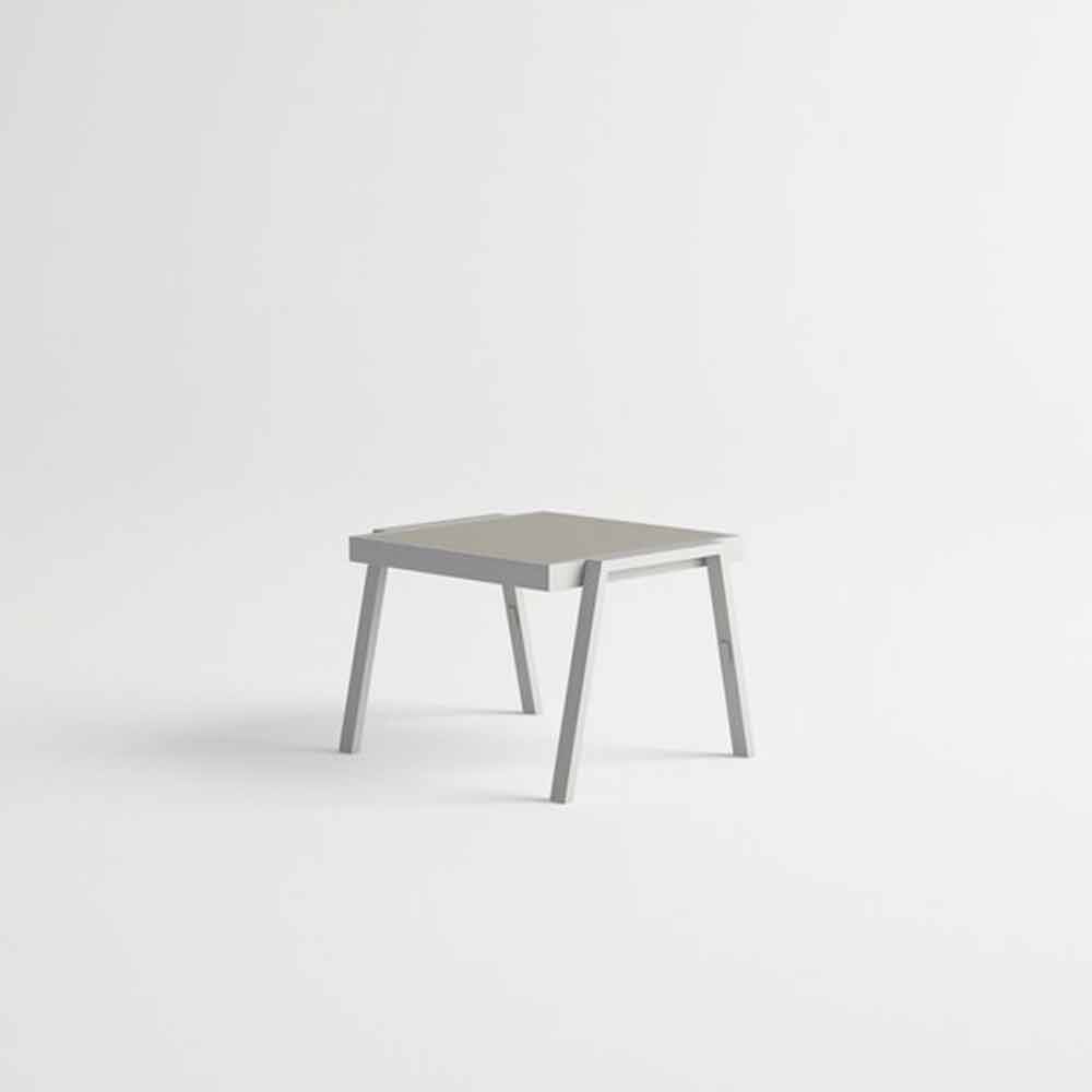 Mesa de centro externa, estrutura em alumínio e tampo laminado em HPL, design moderno e elegante.