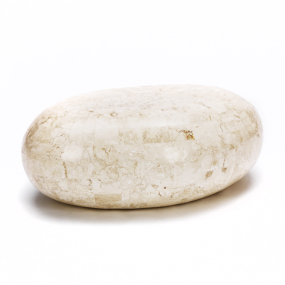 Mesa de centro feita de bloco romboidal de pedra fóssil. Possui um design único, simples e essencial, perfeito para decorar ambientes clássicos e modernos.