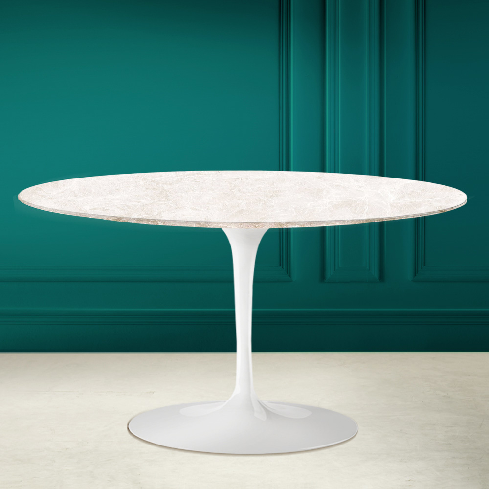 Mesa de centro oval em cerâmica creme diamante Fabricado na Itália