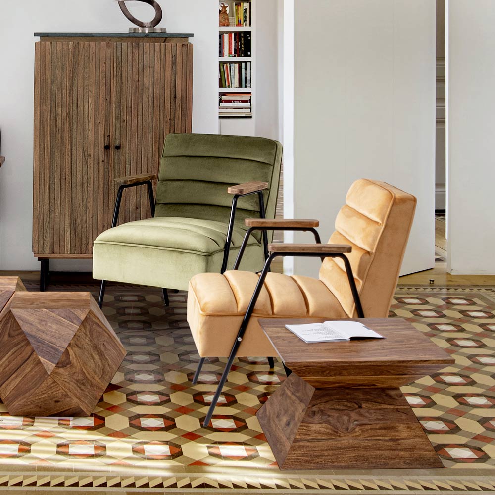 Mesa de centro para sala com desenho piramidal em sheesham.