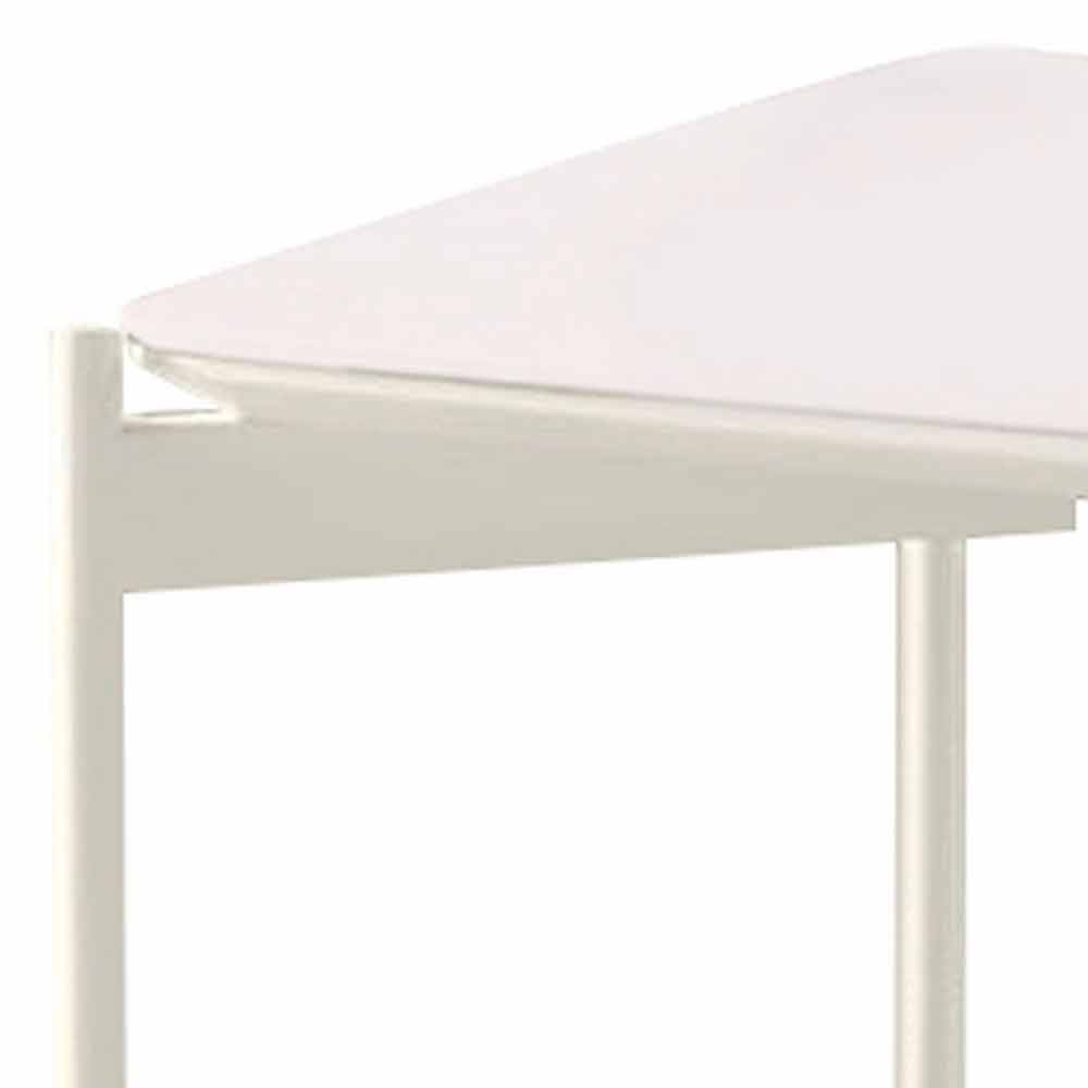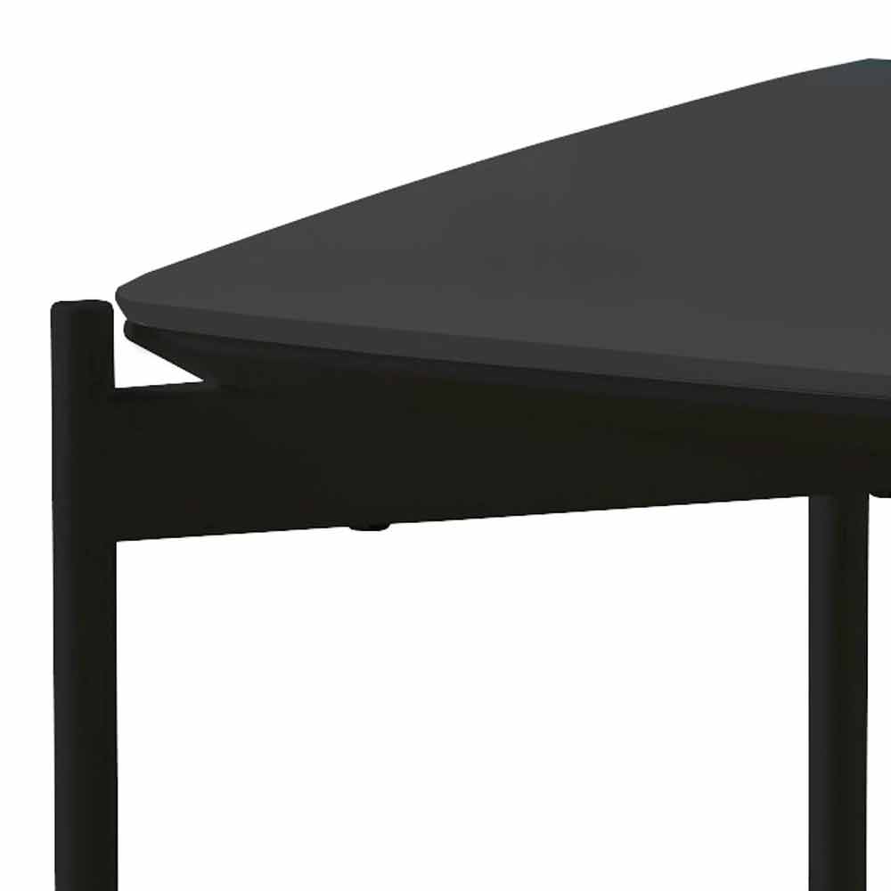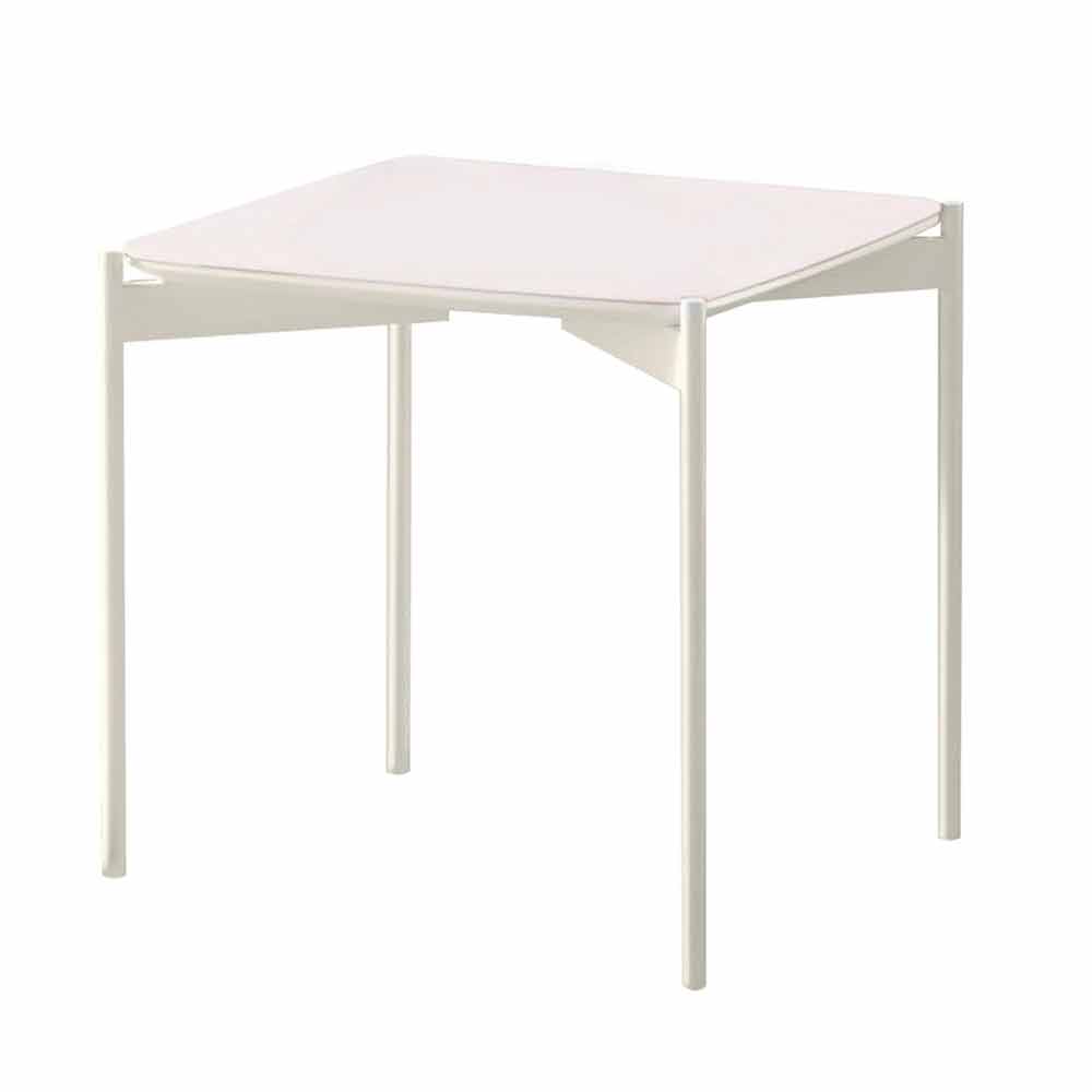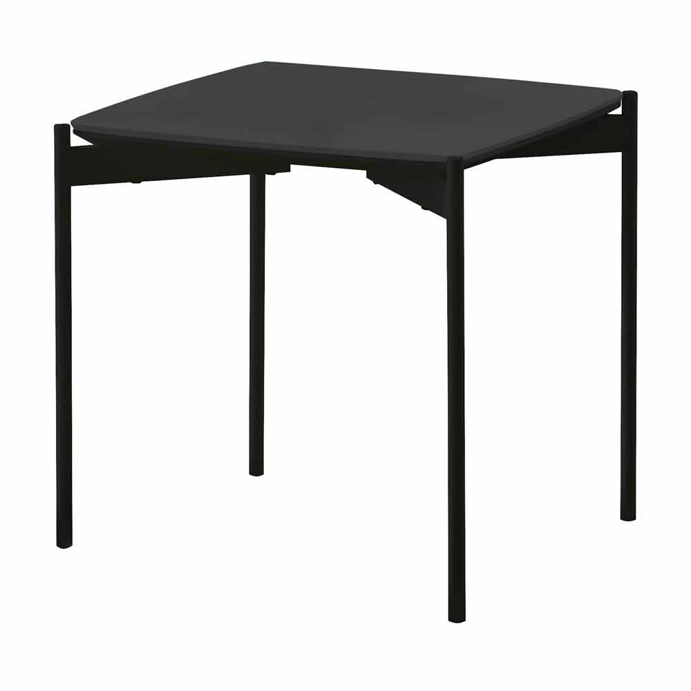 Istrice é uma mesa de centro quadrada feita com um tampo de MDF com uma placa de cerâmica no topo e uma estrutura de metal.