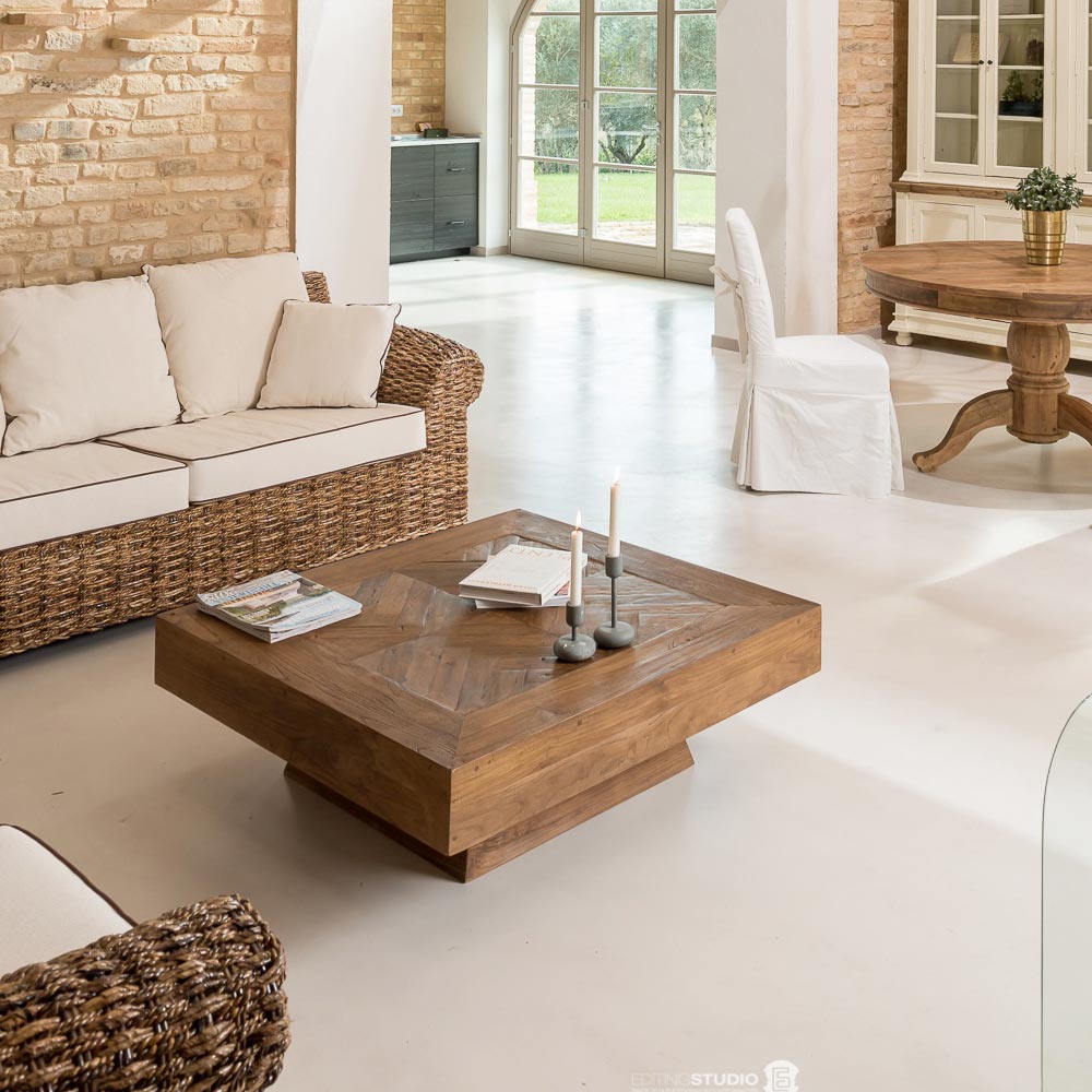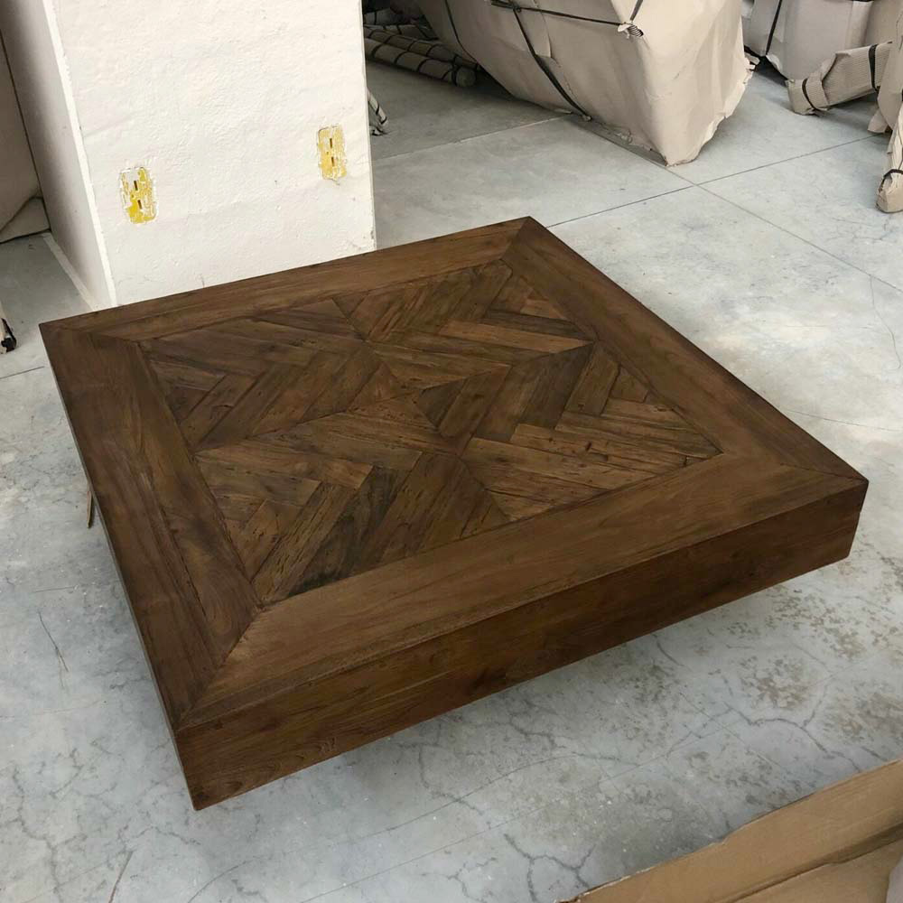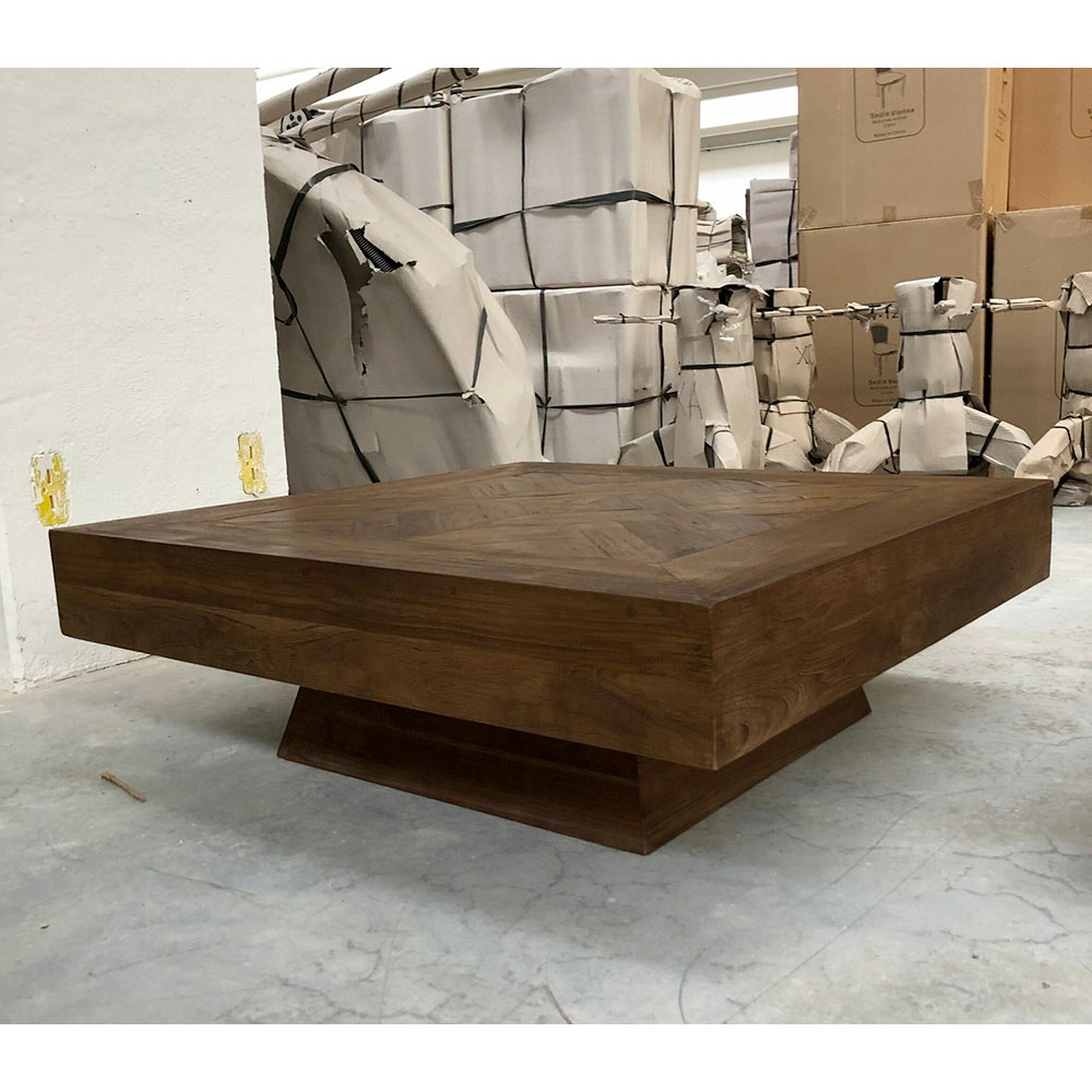 Mesa de centro quadrada em madeira tropical reciclada