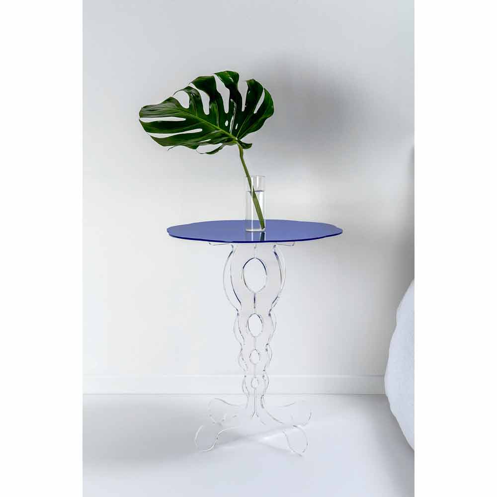 Mesa de centro redonda azul 50 cm Janis, design moderno, fabricado na Itália