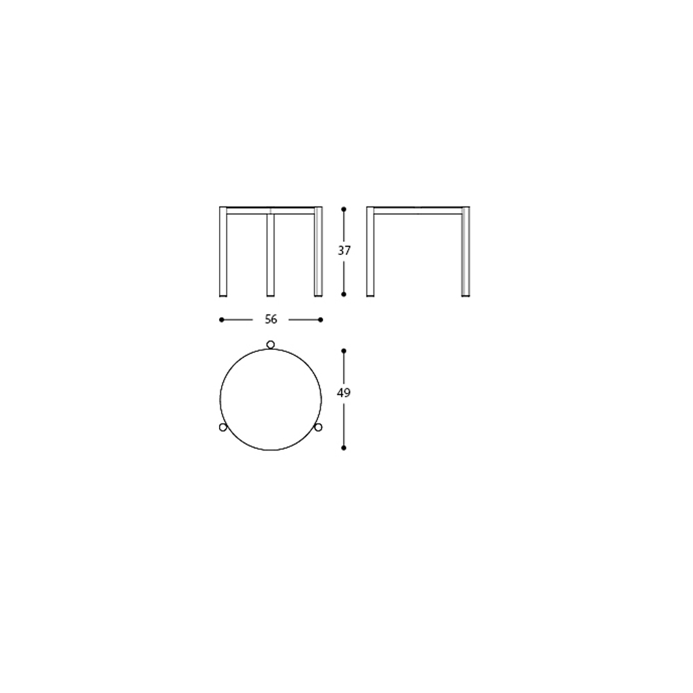 Mesa de centro redonda para exterior com base em alumínio pintado.