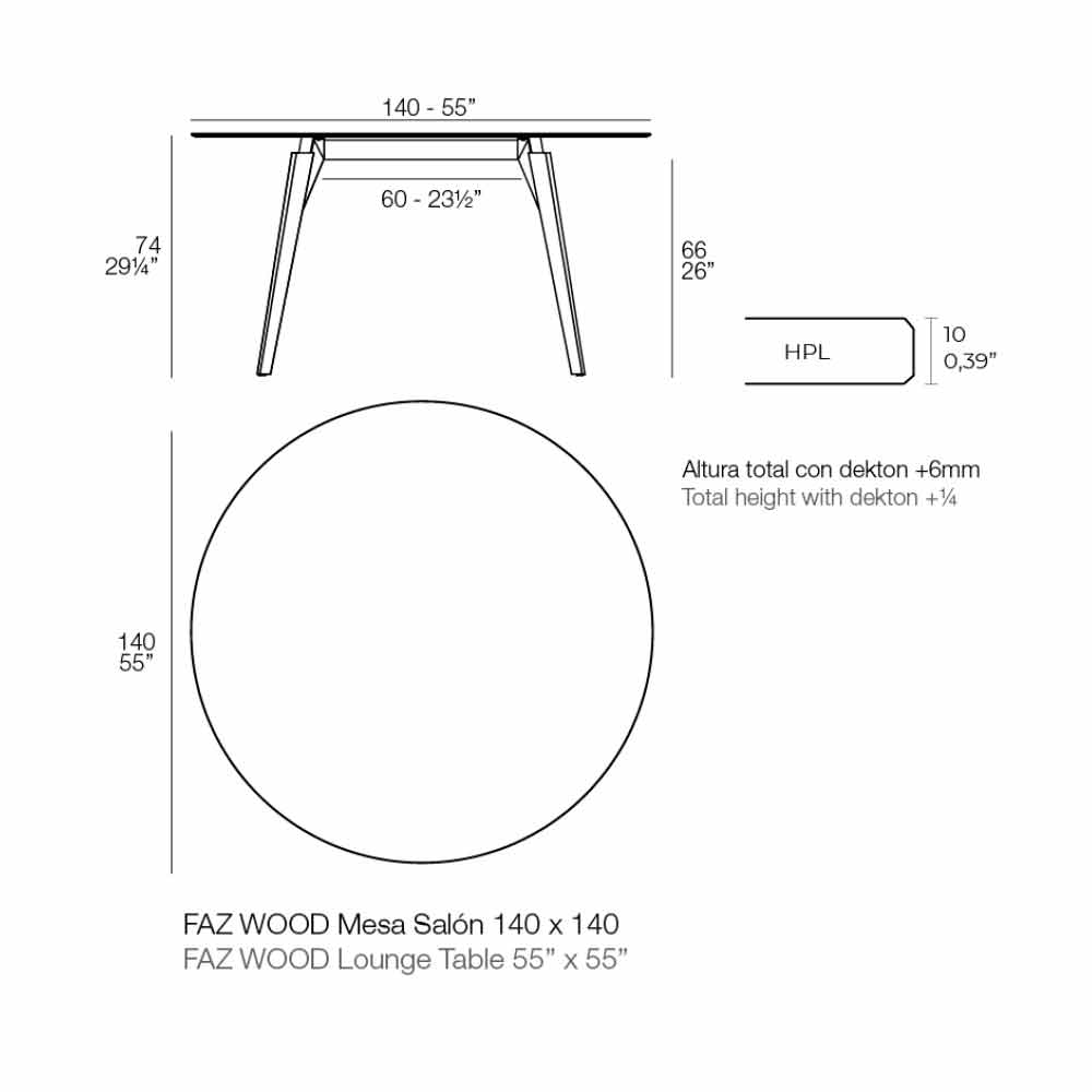 Na verdade, a combinação das pernas com o tampo laminado em HPL cria um design casual-chic com um espírito vanguardista e inovador, ideal para áreas internas como lounges, salas de jantar, bares, etc.