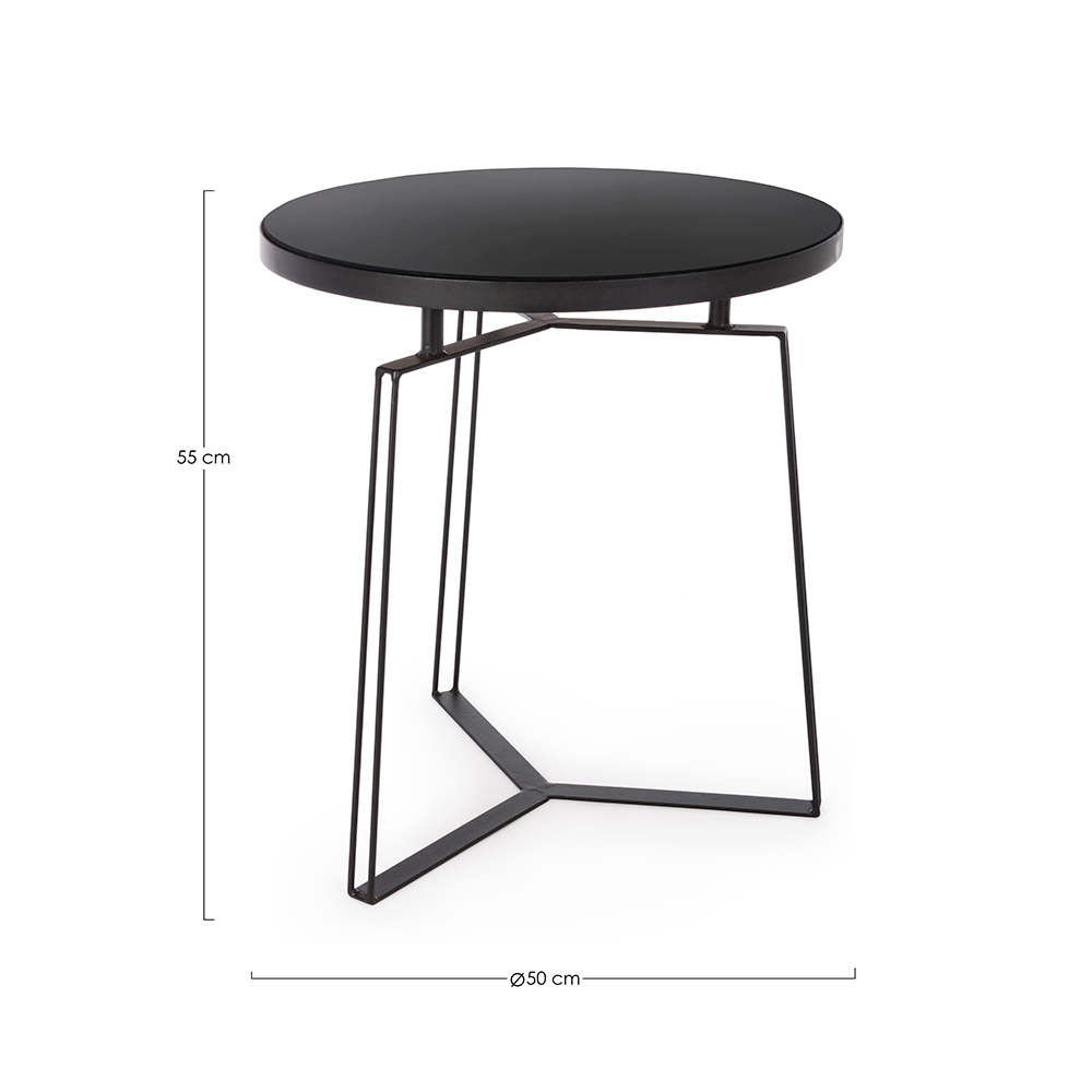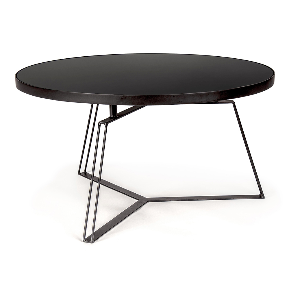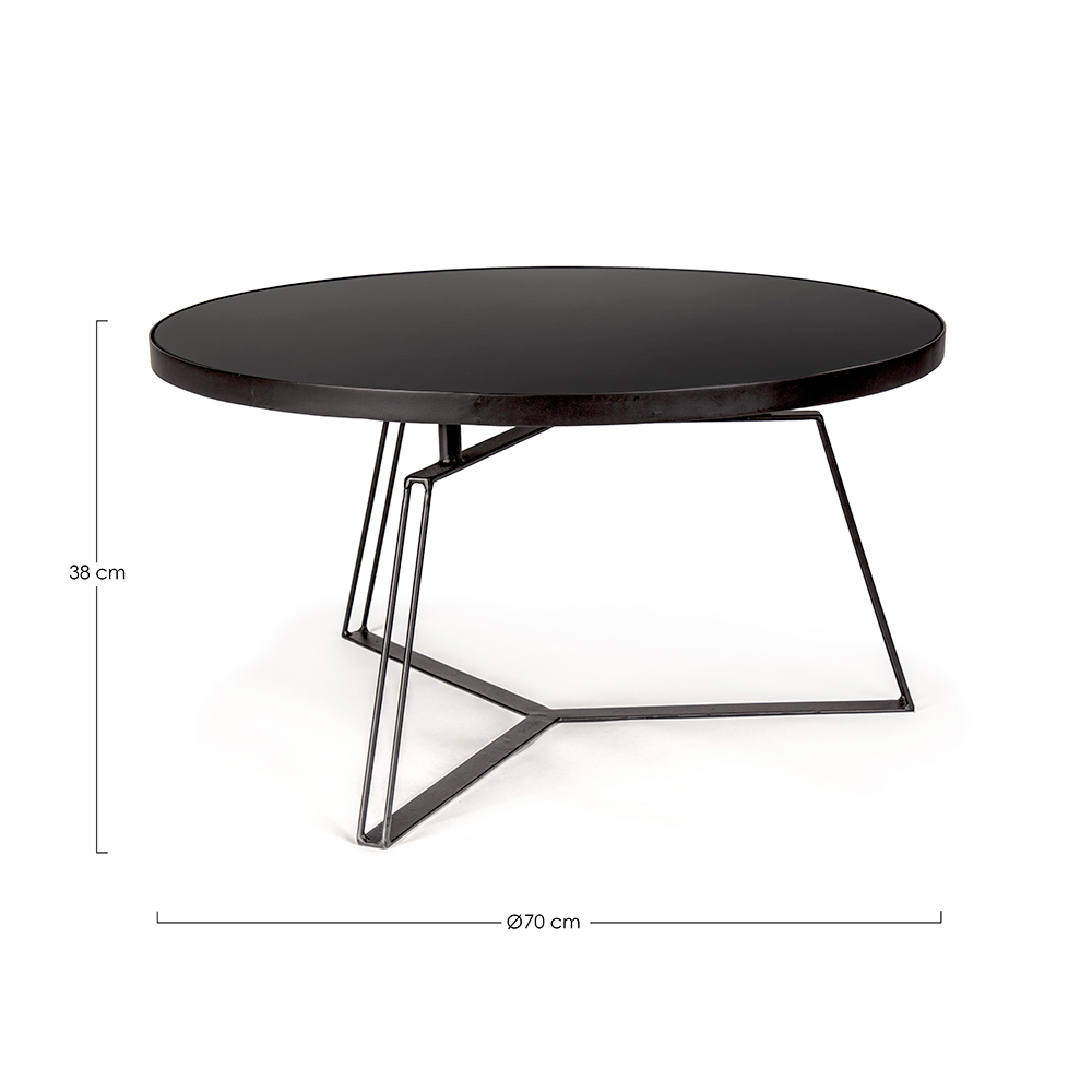 Mesa de centro redonda em aço preto e tampo em vidro, 2 tamanhos.