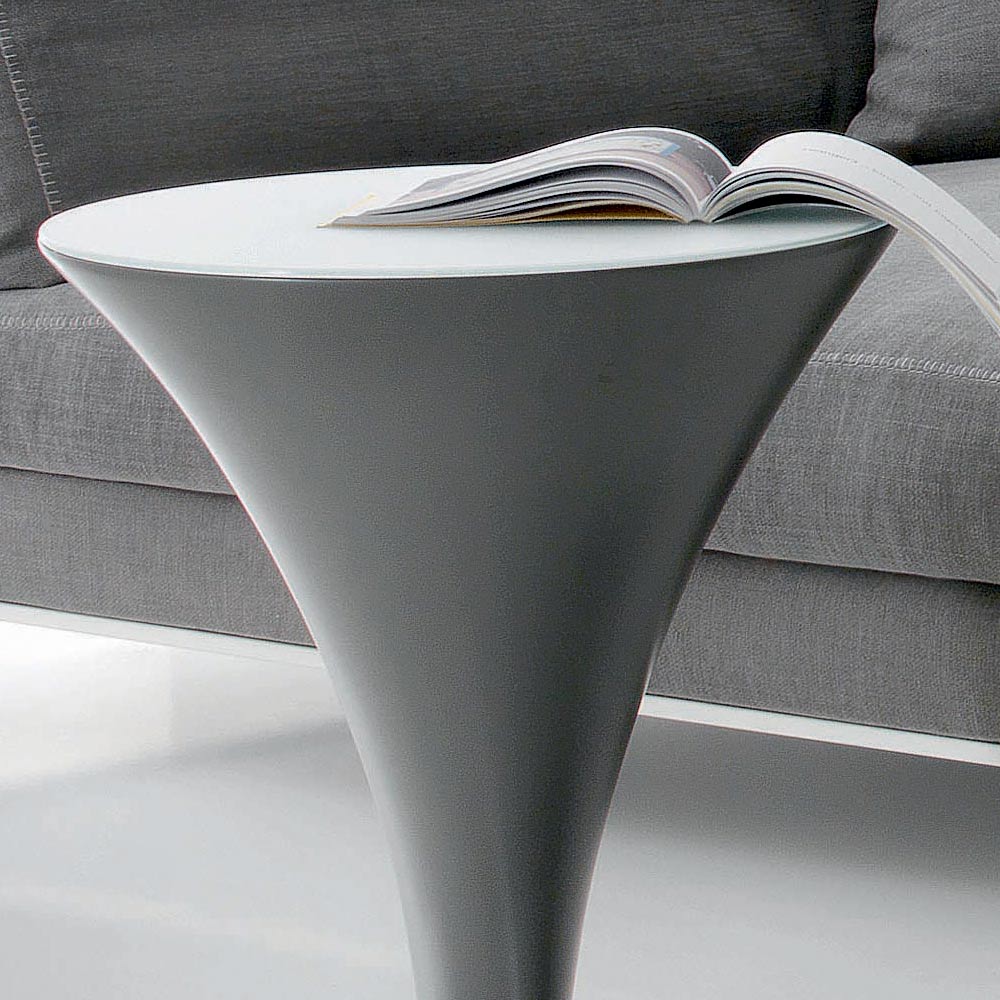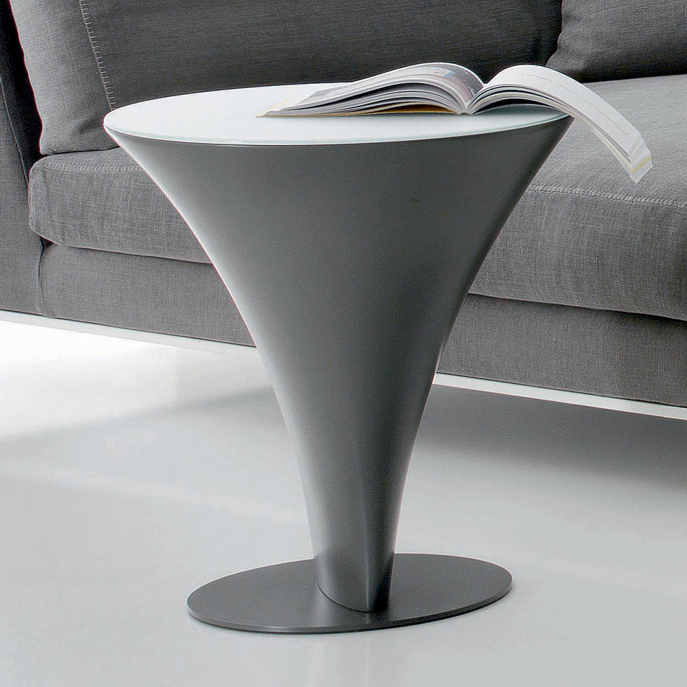 forma de barco original que é realçada pelo brilho do tampo em vidro.