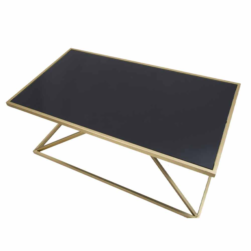 Mesa de centro de ferro com tampo de vidro de design retangular.
