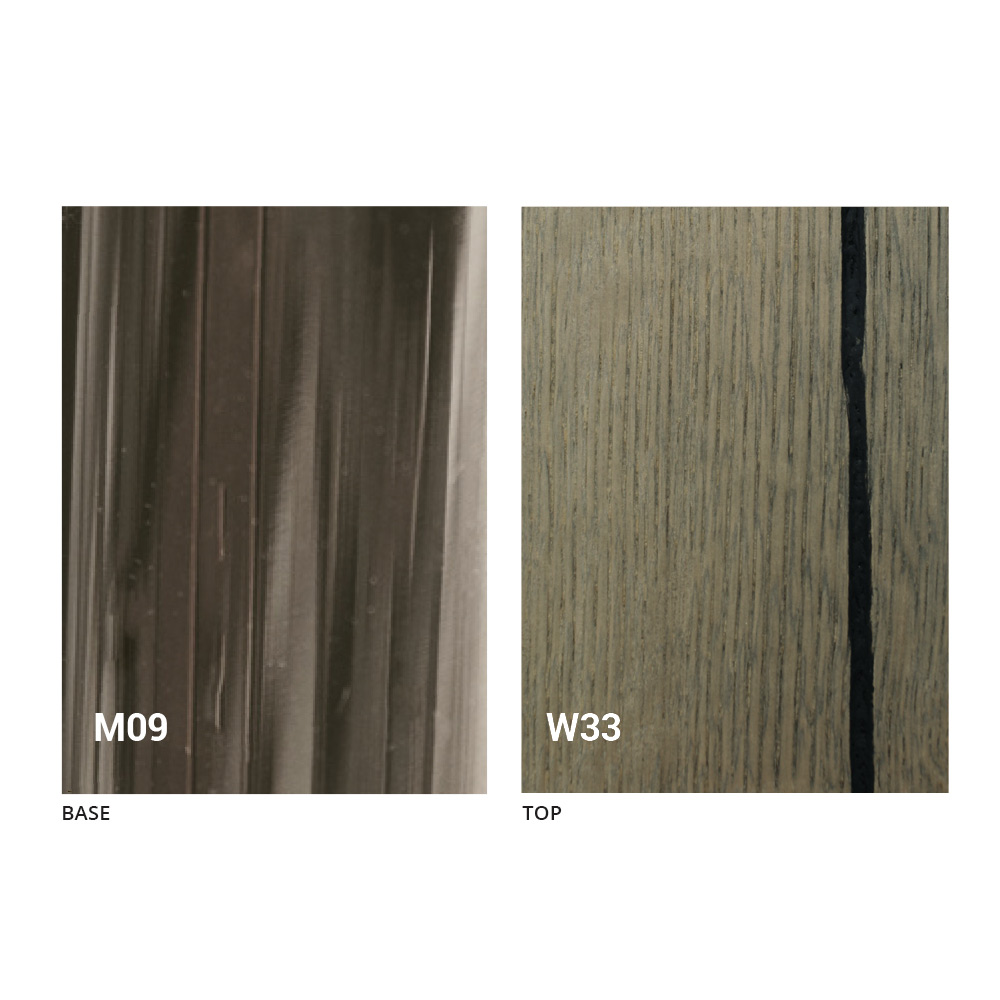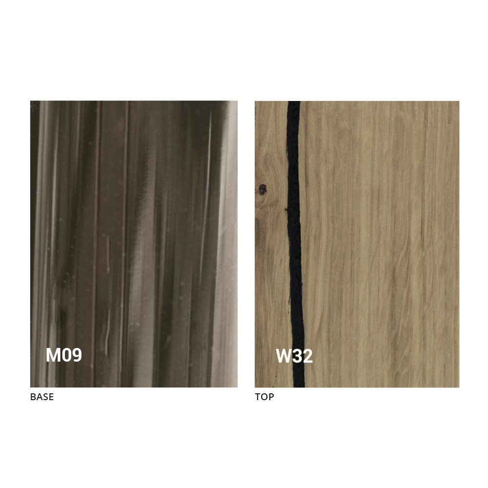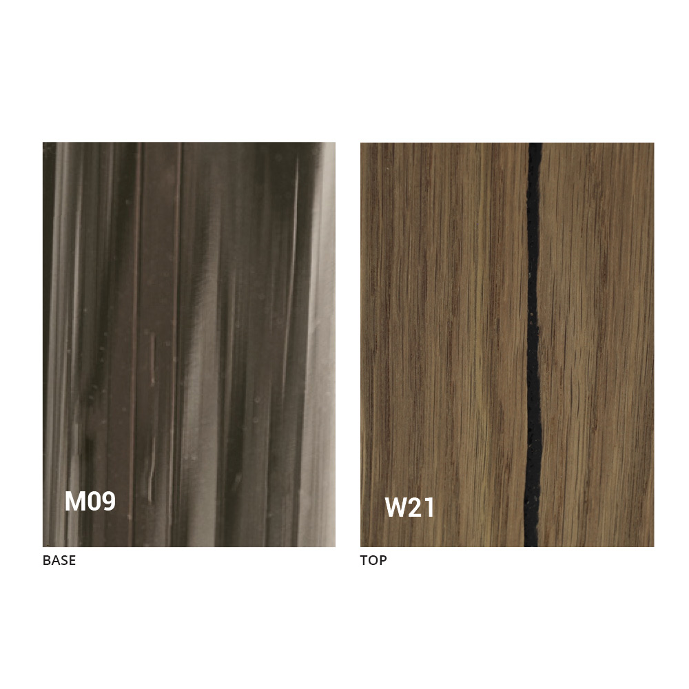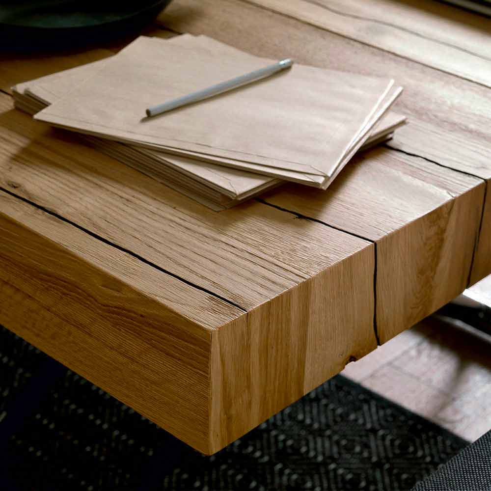 O tampo em madeira maciça está disponível nos acabamentos:- carvalho velho maciço tratado termicamente;