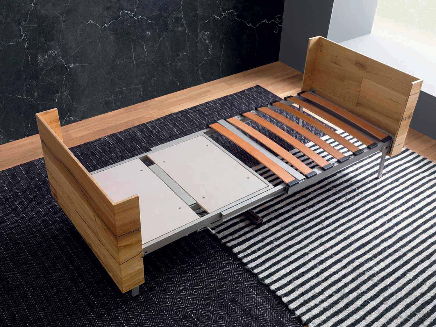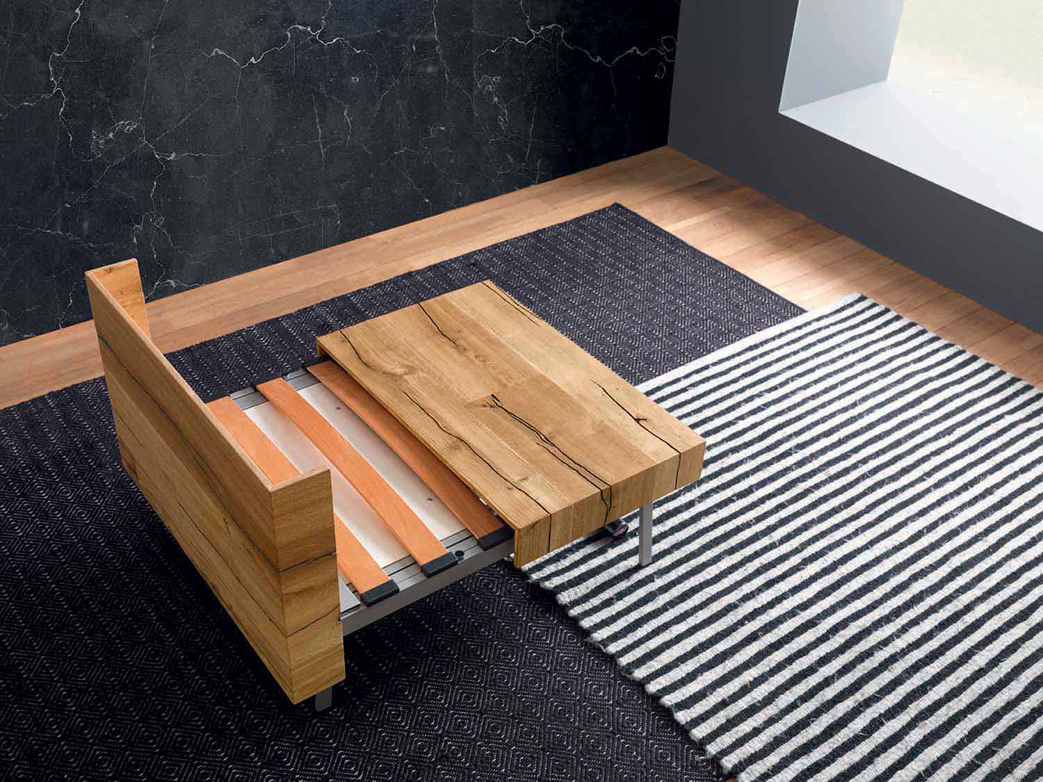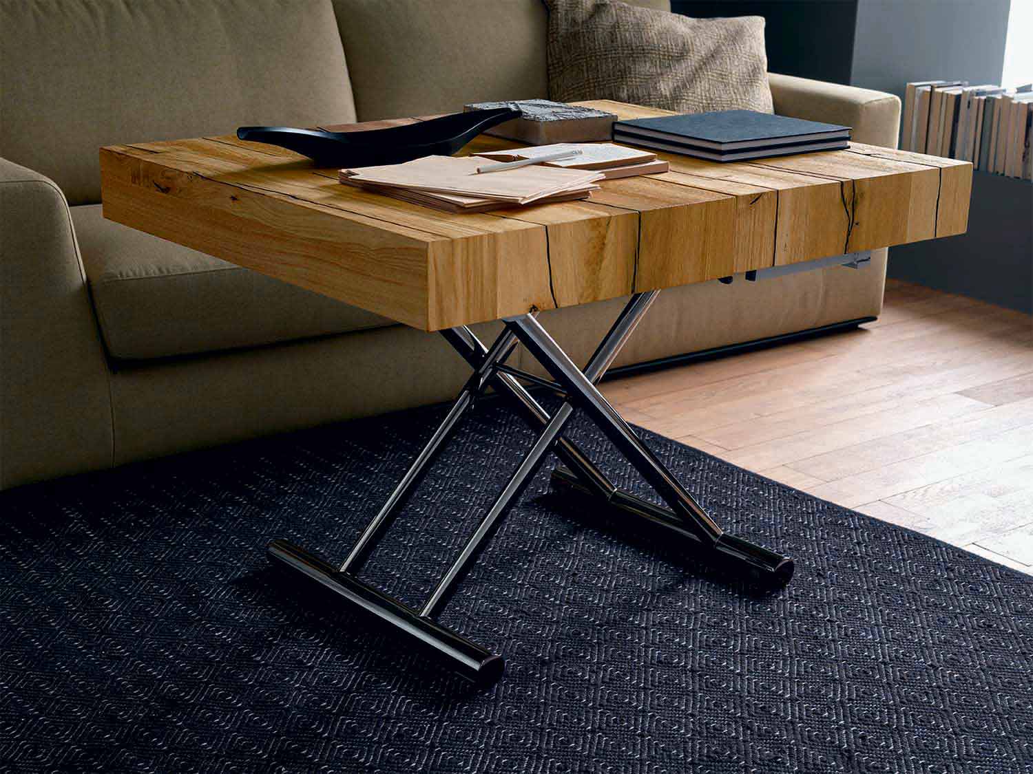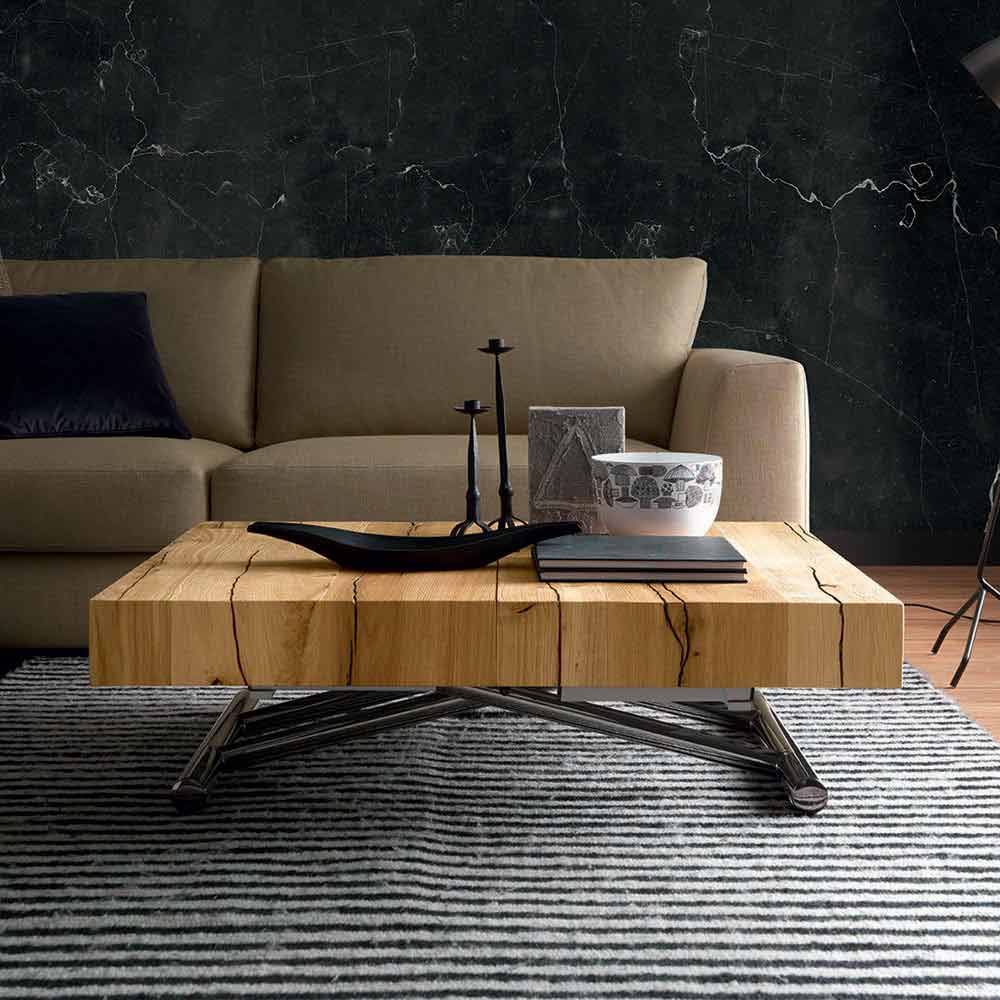 Mesa de centro moderna em madeira maciça e metal convertível em mesa de jantar ou cama Made in Italy.