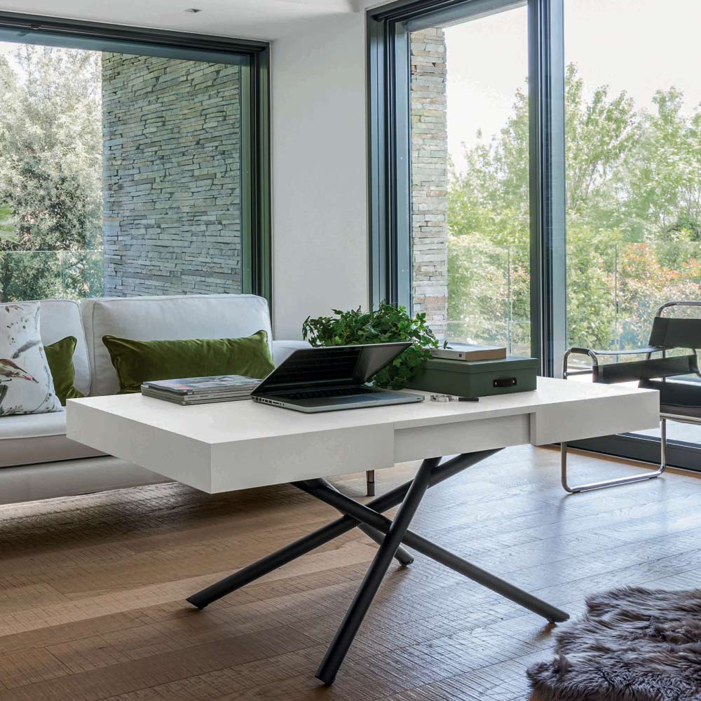 Mesa de centro transformável em madeira melamínica e metal Made in Italy.