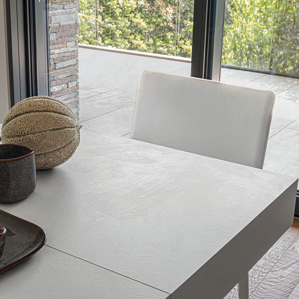 O tampo está disponível em melamina, lacado, folheado de madeira e efeito argamassa numa vasta gama de acabamentos.