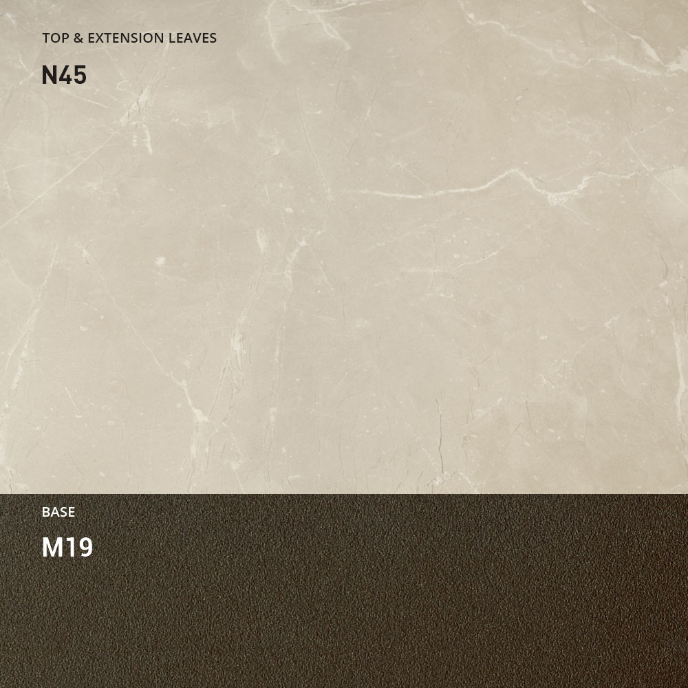 O tampo está disponível em melamina, cerâmica mate, vidro e efeito argamassa numa vasta gama de acabamentos.