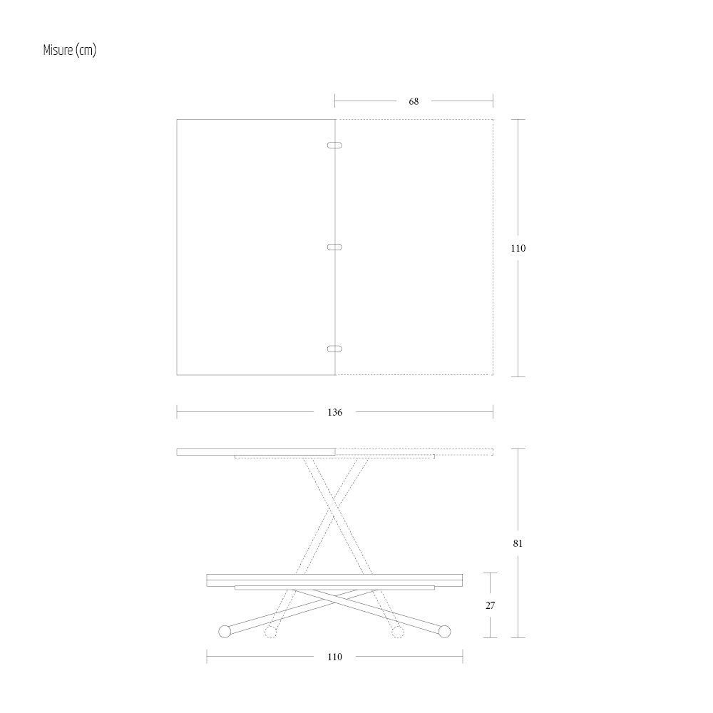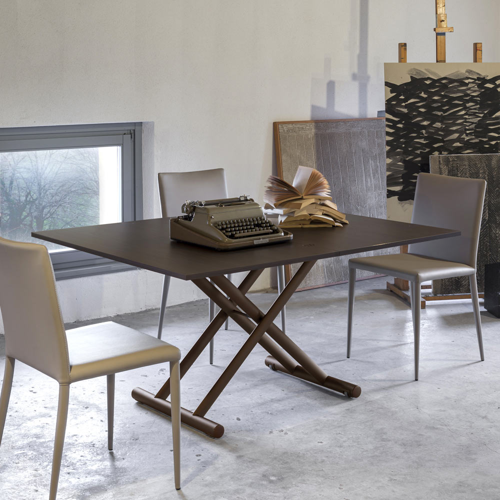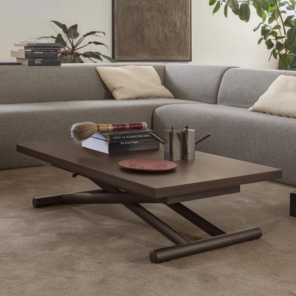 Mesa de centro transformável em madeira melamínica e metal Made in Italy.