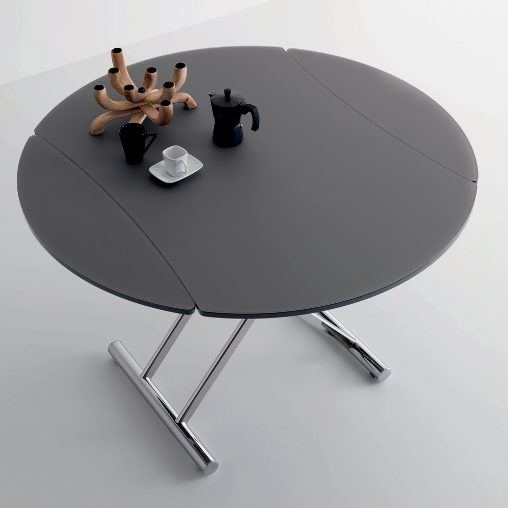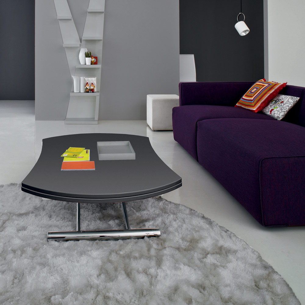mesa de centro se transforma em uma mesa de jantar por meio de um mecanismo de gás