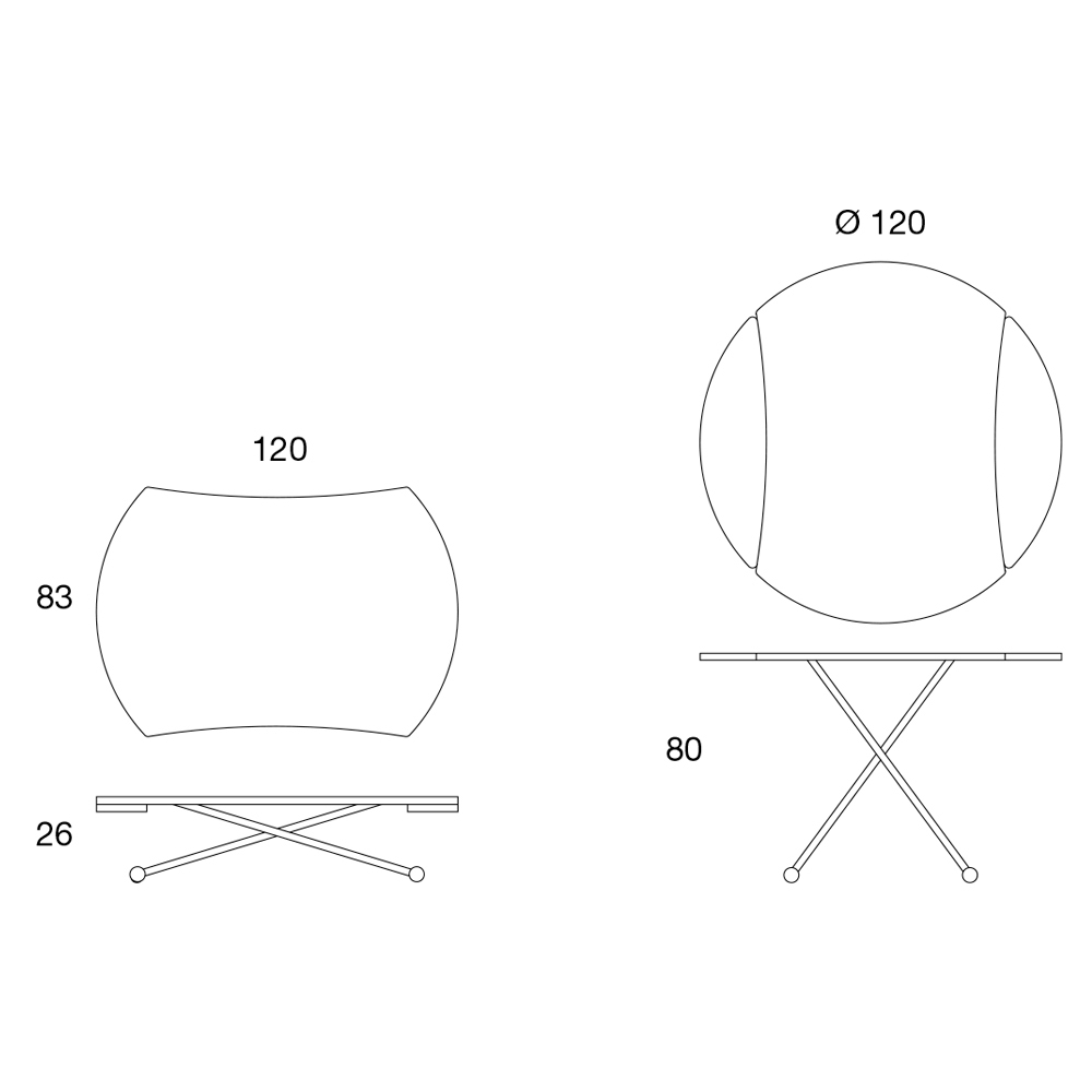 Mesa de centro conversível, base de metal e tampo de vidro, made in Italy design.