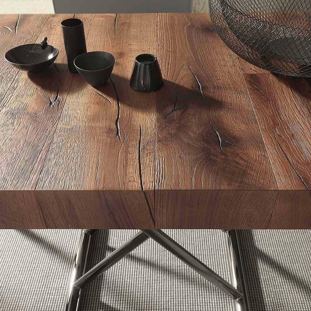 Mesa de centro conversível em mesa de jantar, em madeira e metal Fabricado na Itália.