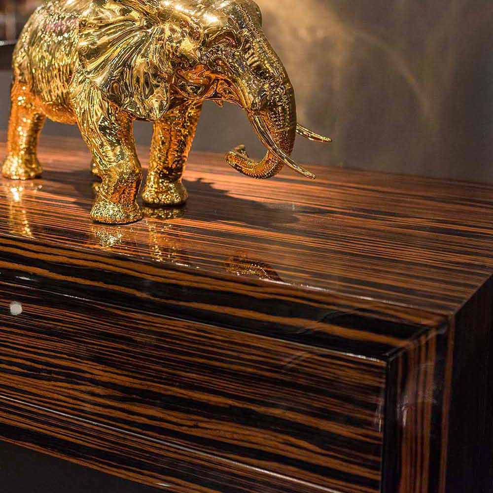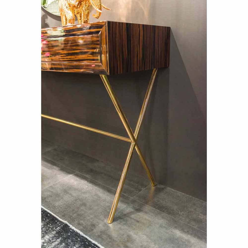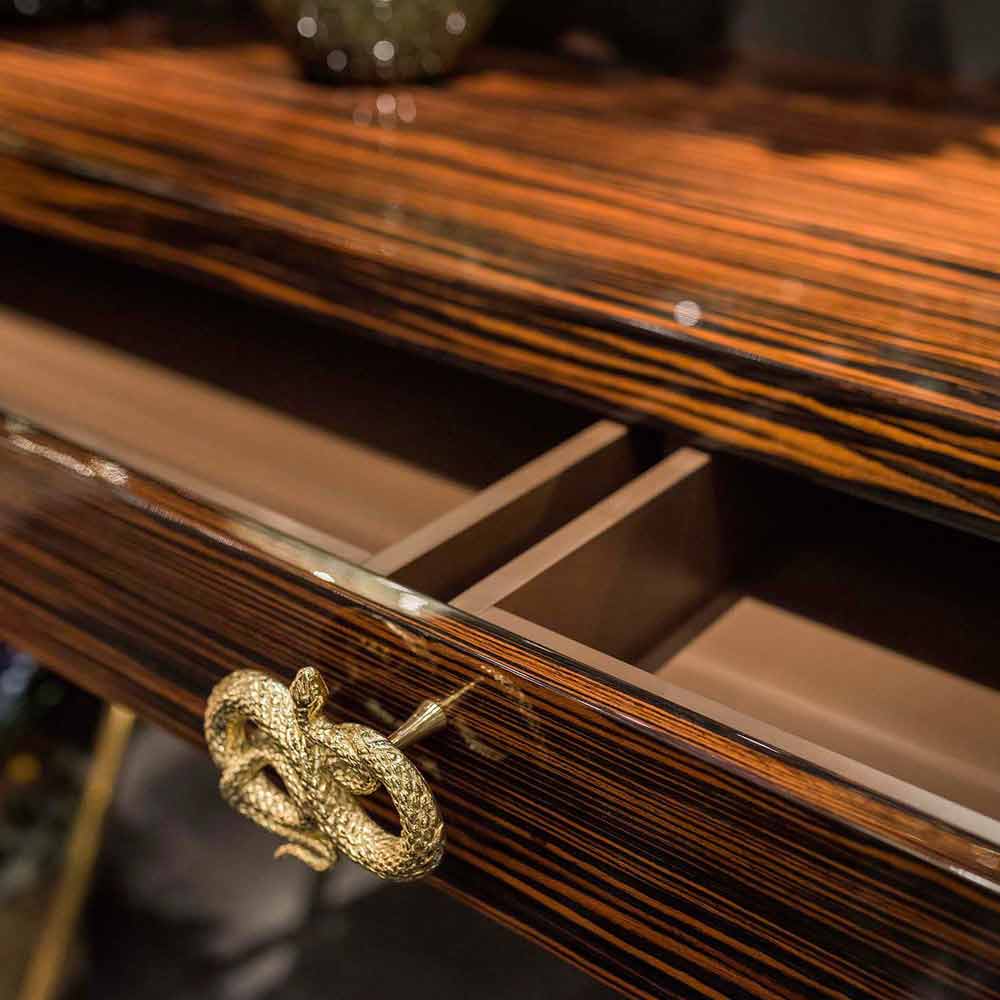 Mesa de console moderna Ada 4, com gavetas deslizantes, feita de ébano brilhante.