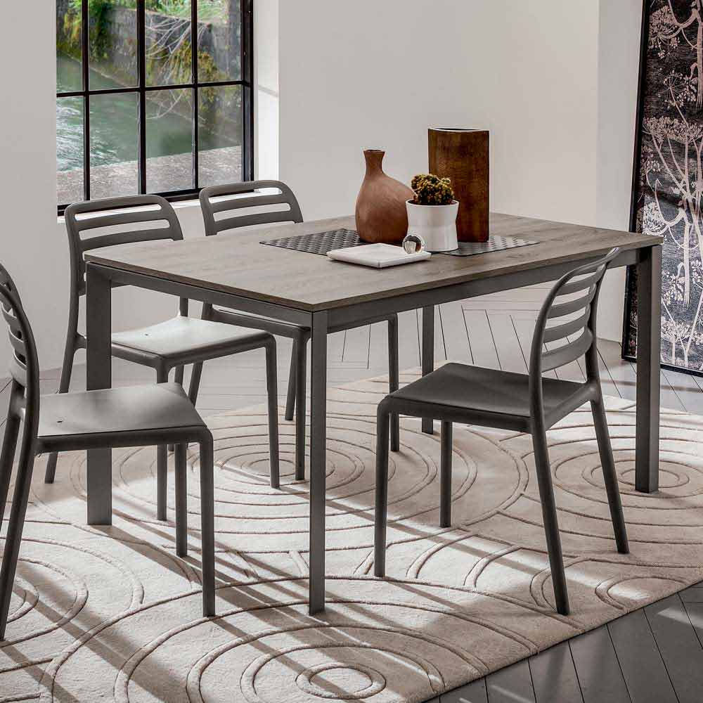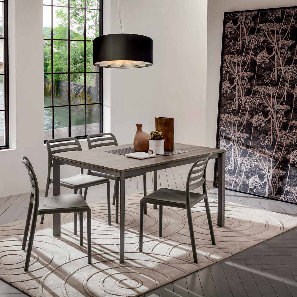 Mesa de jantar com tampo em melamina e estrutura em metal Made in Italy.