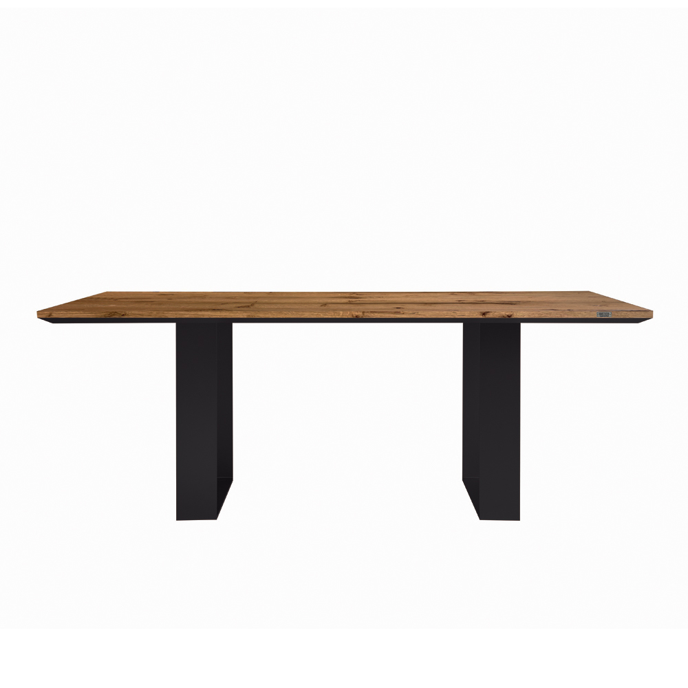 Mesa de jantar 200 cm em madeira maciça com estrutura em ferro Made in Italy.