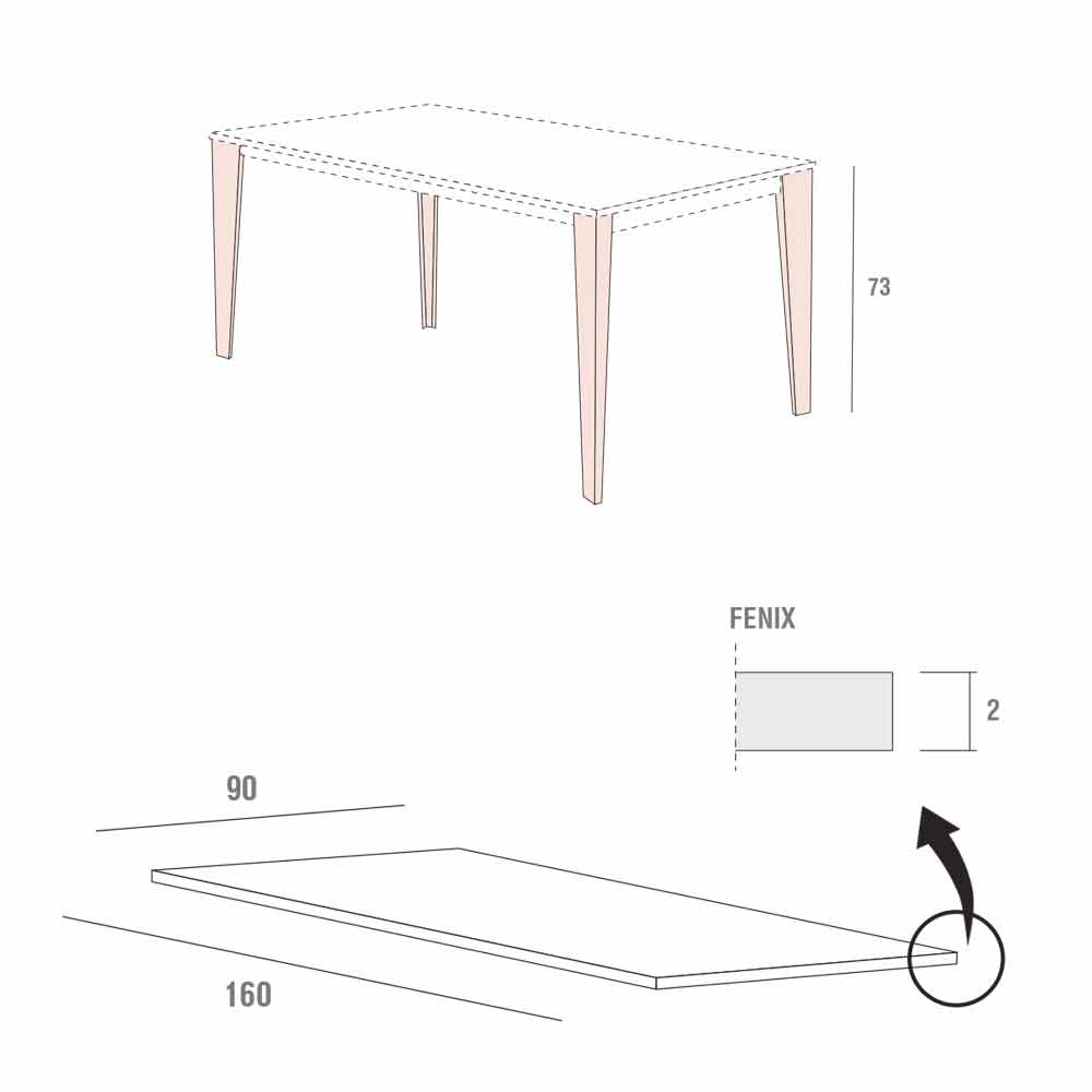 Mesa de jantar Fenix com estrutura em metal lacado Made in Italy.