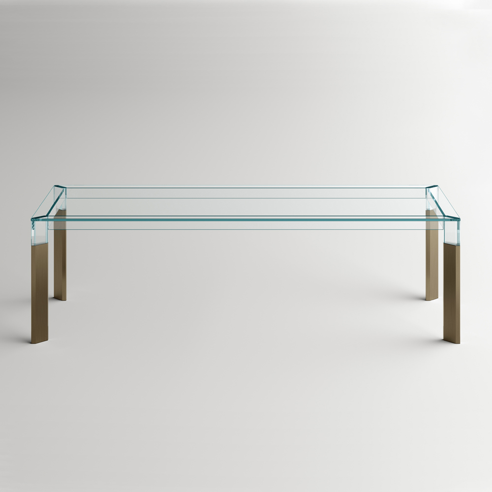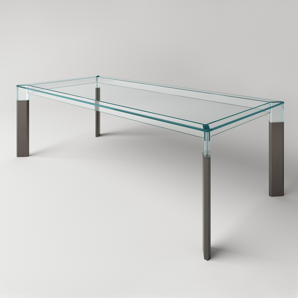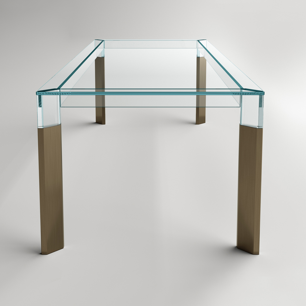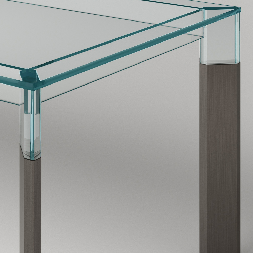 vidro e pés em vidro e madeira maciça . Uma solução de mobiliário atemporal, adequada a diferentes estilos, capaz de evidenciar a união perfeita entre a elegância do vidro e a grandiosidade da madeira, favorecendo a sua