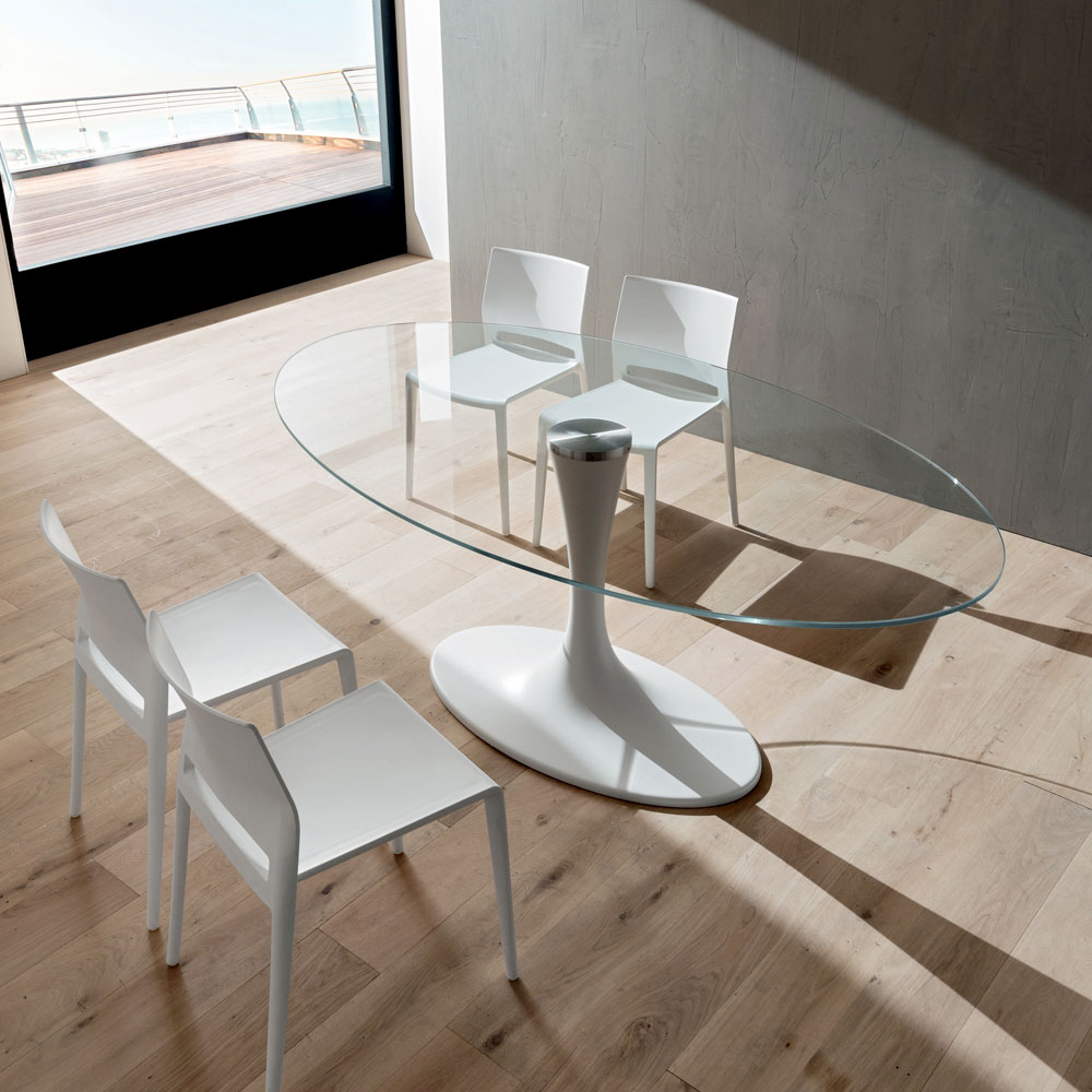 forte personalidade moderna juntamente com o tampo de vidro, um elemento particularmente versátil e ao mesmo tempo elegante . O resultado final é um móvel