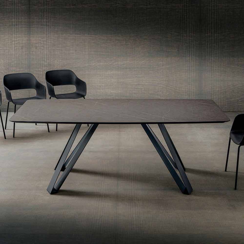 Mesa de jantar em hpl estratificado e metal antracite Fabricado na Itália, de alta qualidade.