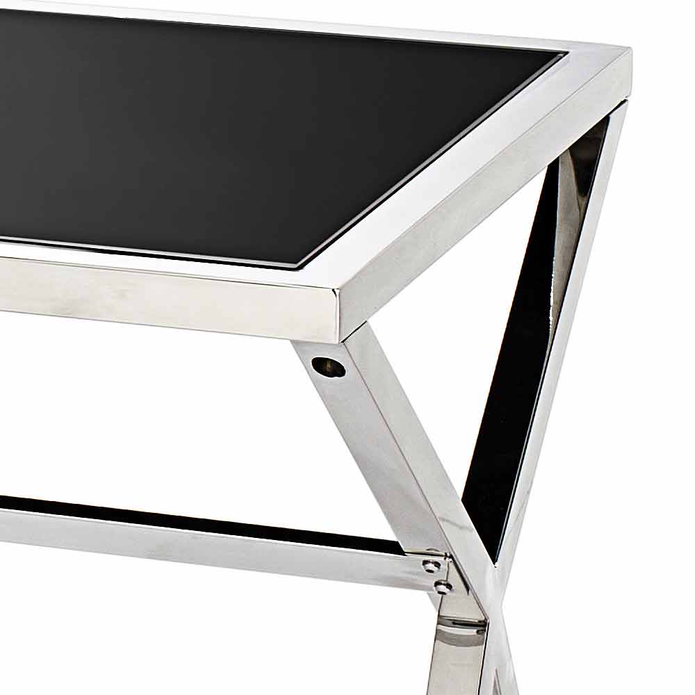 Mesa de design em aço e vidro preto brilhante L120xH75cm Millon