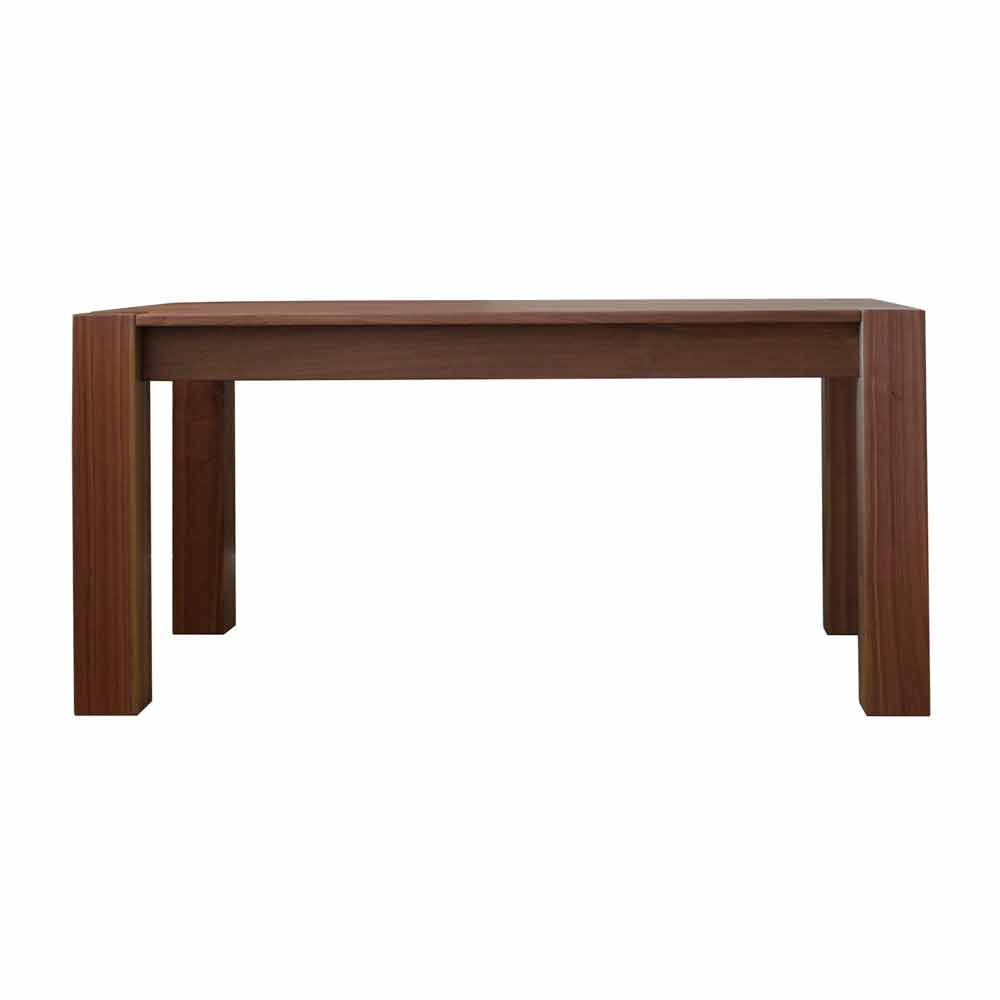 A mesa extensível Jacob é caracterizada por um tampo em madeira de carvalho. O corte superior nos cantos é o assento das pernas, para obter um efeito de continuidade e linearidade. É feito de canaletto de nogueira maciça, acabamento natural, extensível com extensões inseridas no alojamento escondido sob o topo.