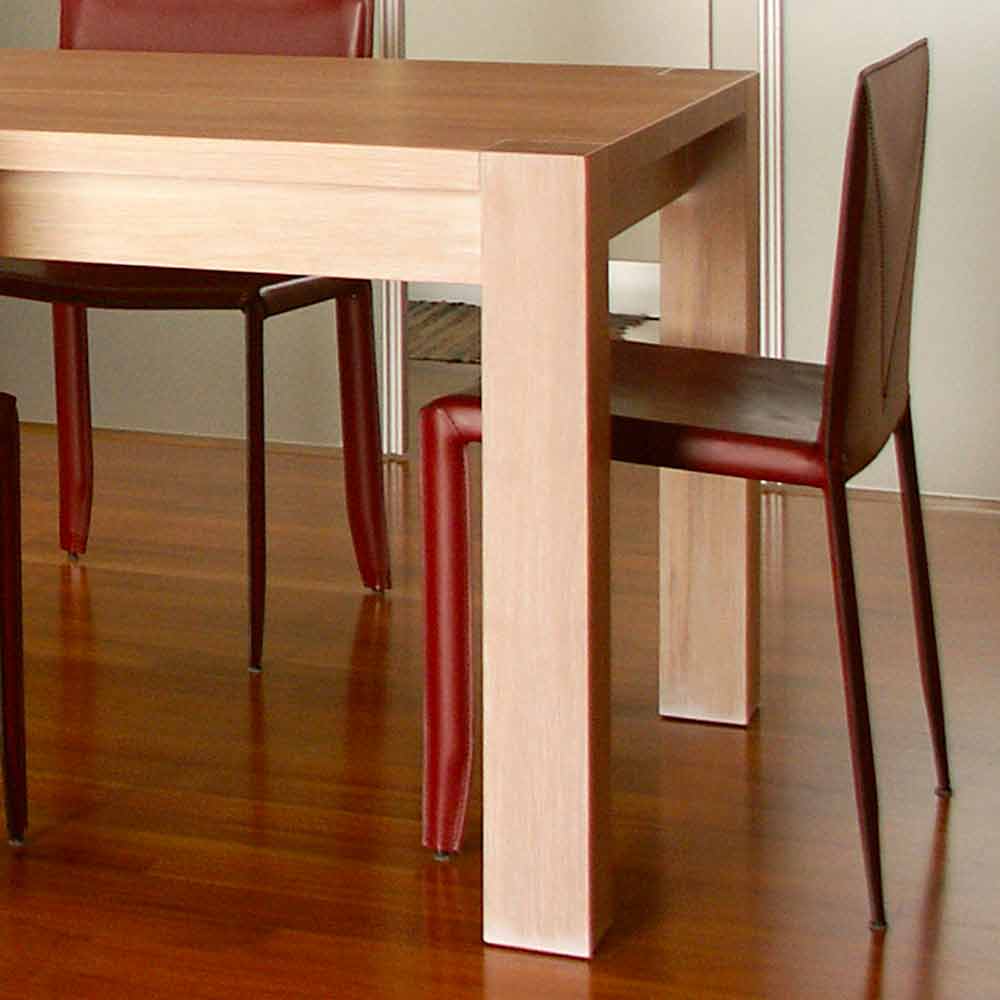 A mesa de extensão de Jacob é caracterizada por um topo de carvalho. O corte superior nos cantos preserva as extensões práticas no compartimento escondido sob o piso, e é interrompido em sua continuidade apenas pelas pernas, que emergem com a veia da cabeça do tronco. É feito de carvalho maciço, acabamento natural, extensível por meio de duas extensões inseridas no invólucro escondido sob o topo.
