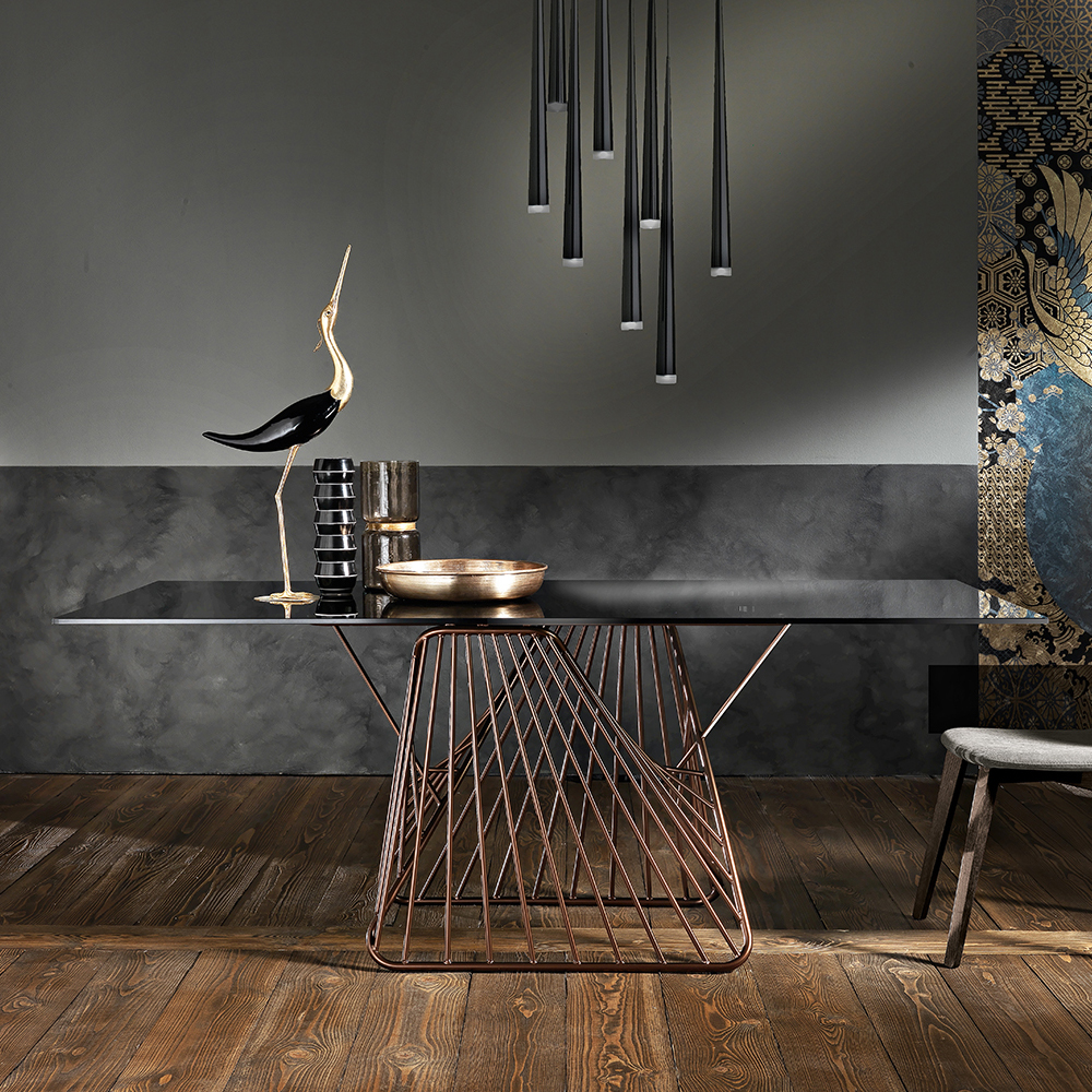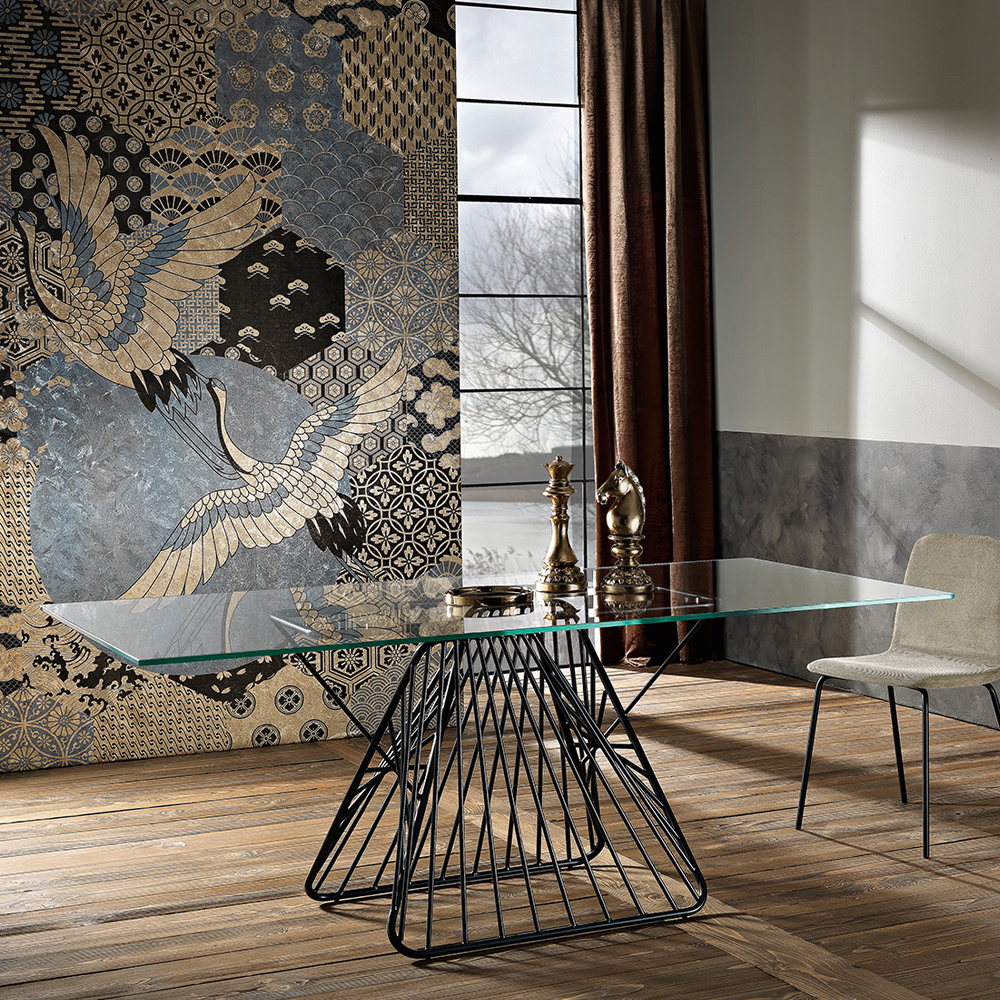 Mitia é uma incrível mesa fixa realizada na Itália com uma base de metal pintado e superfície de vidro temperado (espessura de 12mm).