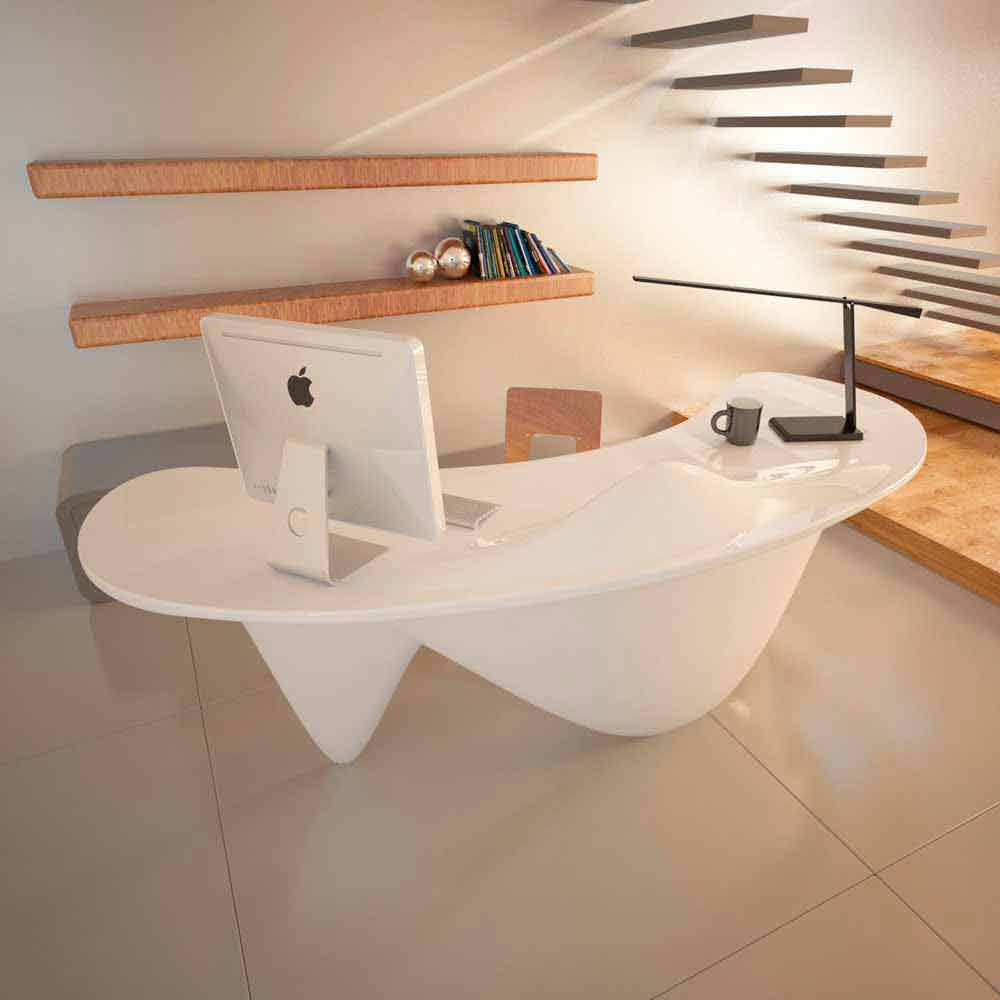 Design de Rosaria Colonna e materiais inovadores para um objeto que pretende se tornar o centro funcional e estético de um importante escritório.