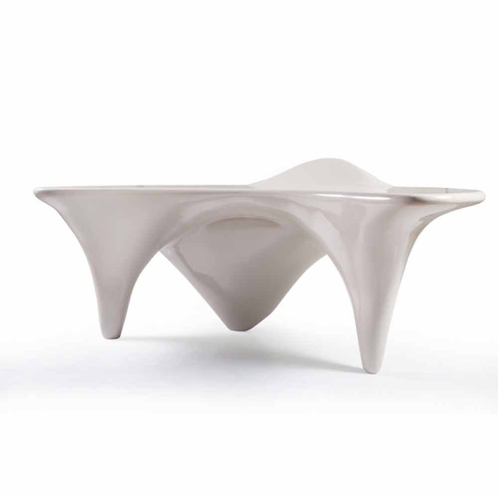 É feito de Solid Surface, uma resina que hoje é líder no setor moveleiro italiano.