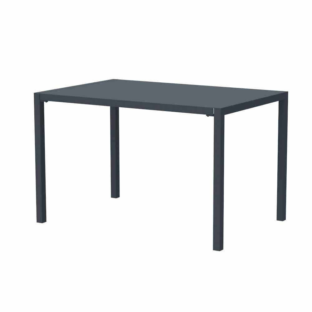 Mesa retangular para área externa em ferro galvanizado com revestimento em pó, autonivelante e removível, fabricada na Itália.