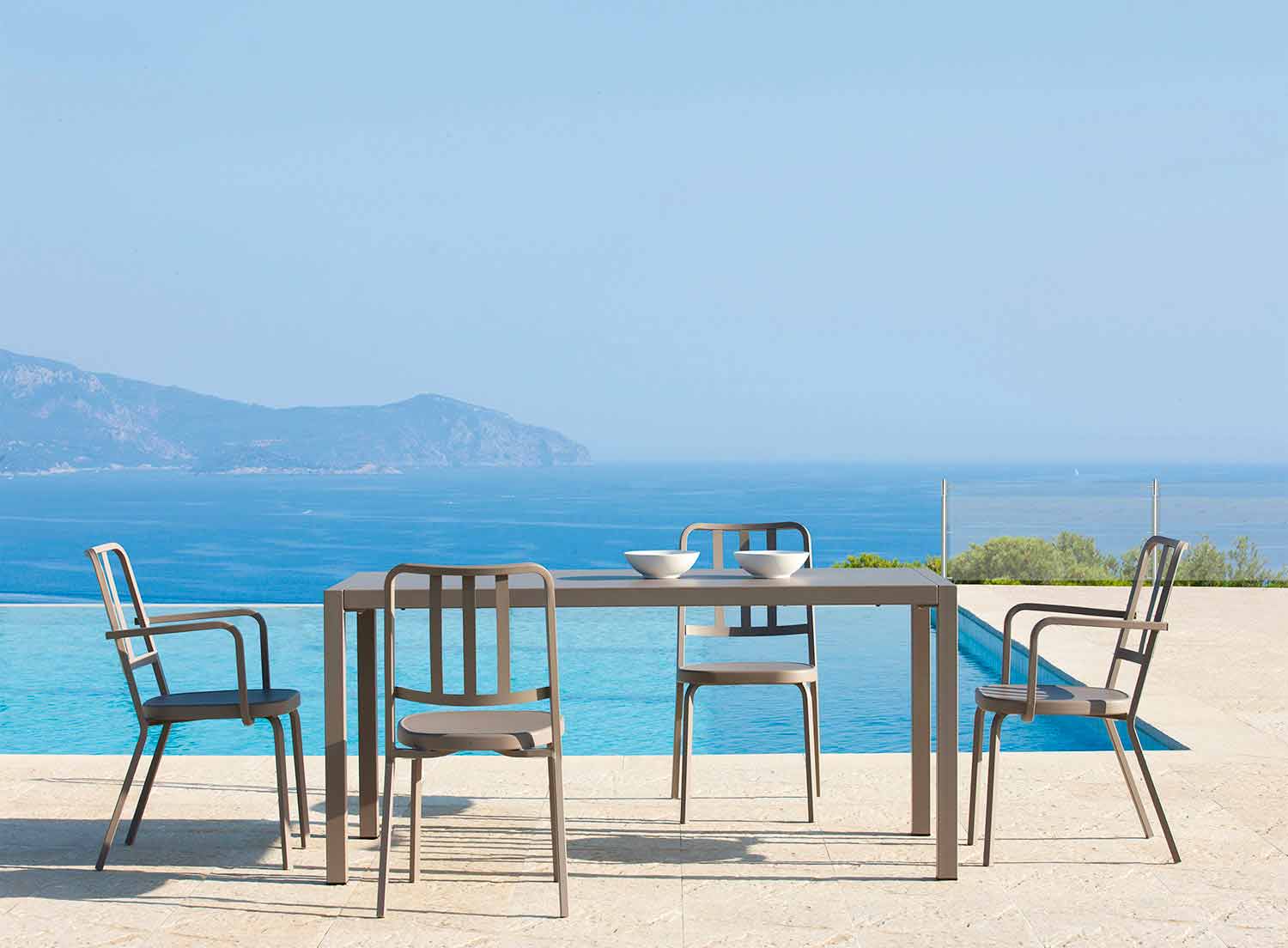 Fabricados na Itália com técnicas inovadoras e matérias-primas de alta qualidade, esses produtos para mobiliar ambientes externos, como jardins e terraços, mas também bares e restaurantes, garantem excelente robustez e, portanto, ótima durabilidade ao longo do tempo, mantendo intacta a vivacidade das cores.