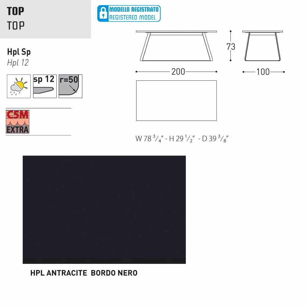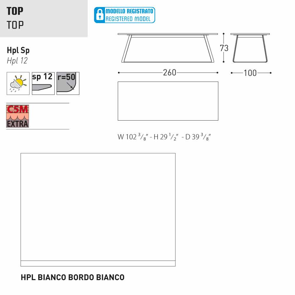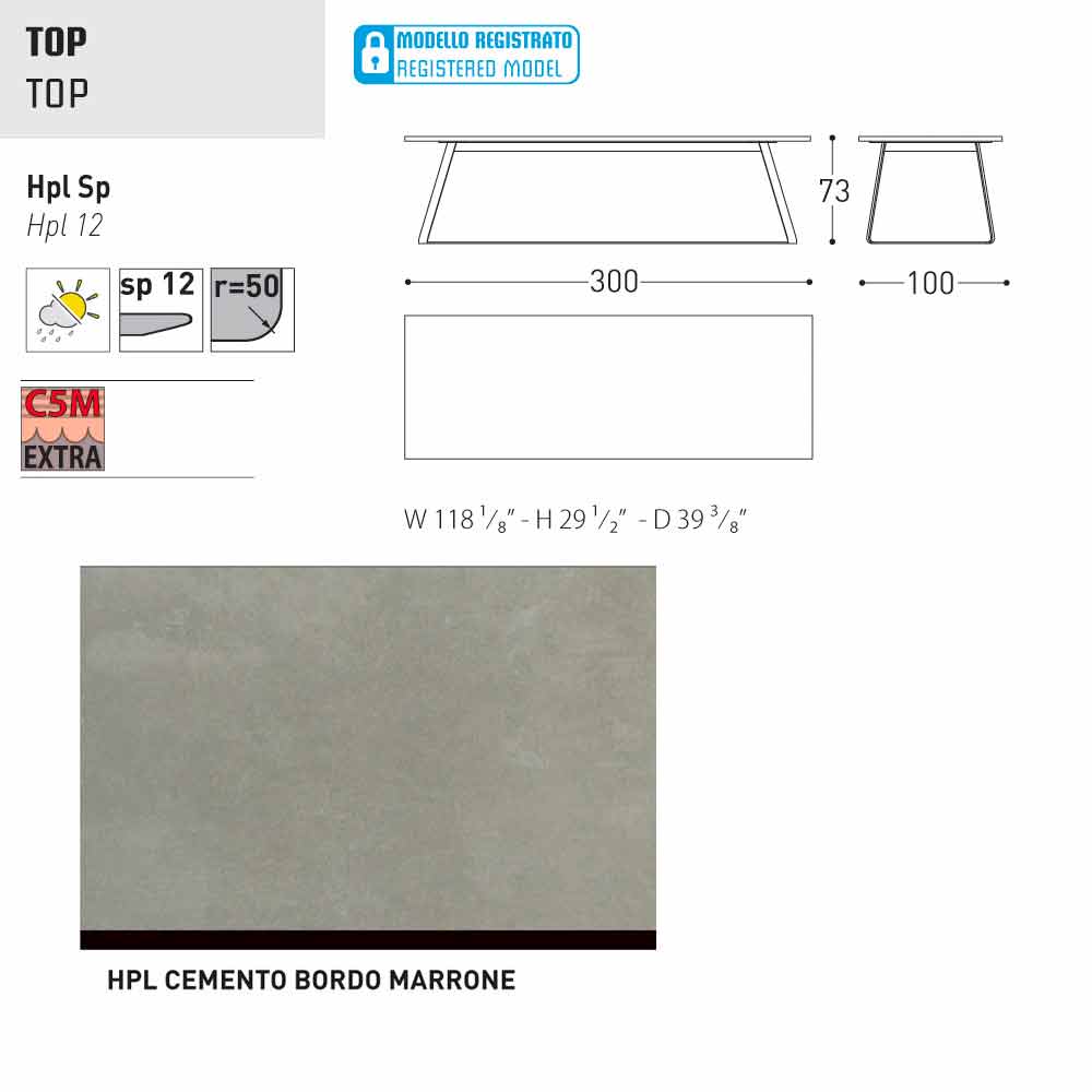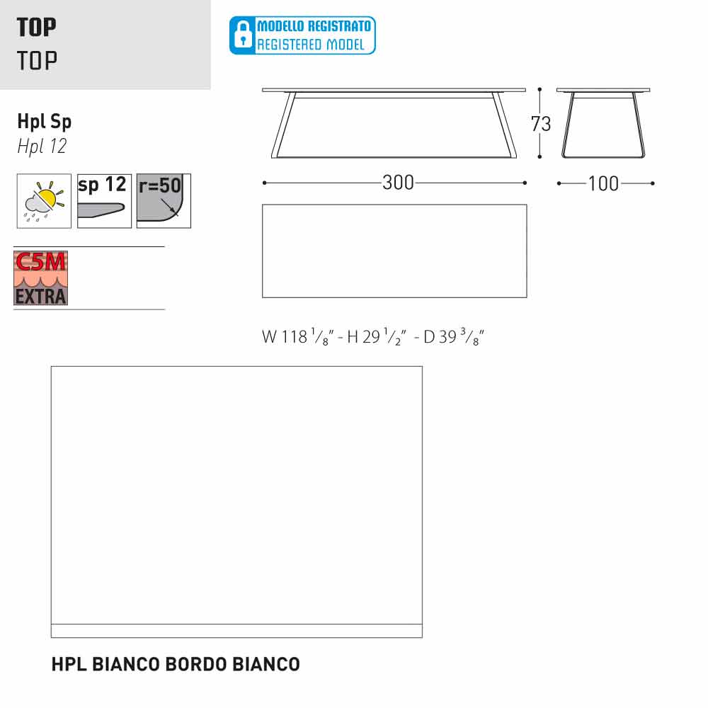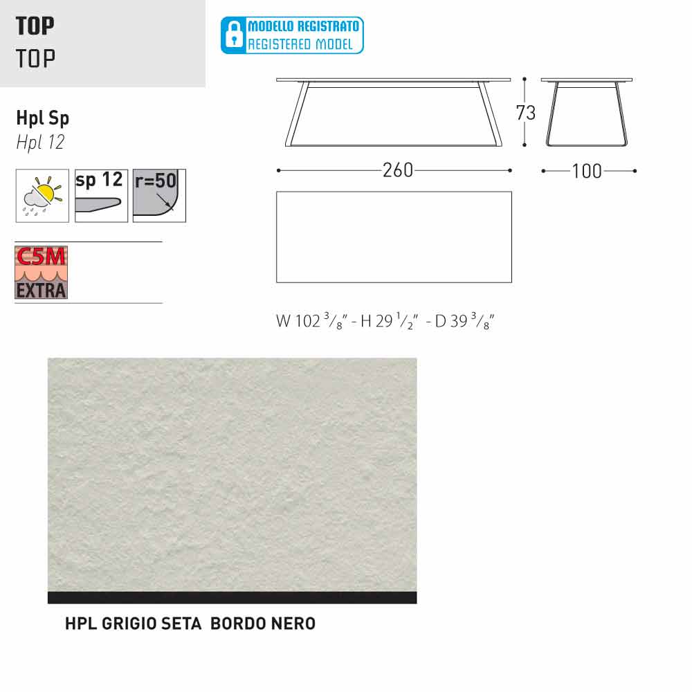 Recursos técnicos HPL : Laminados de alta pressão. Eles são feitos de várias camadas de papel (70%) impregnadas com resinas termofixas (30%) e compactadas por cerca de 45-50 minutos através da ação combinada de calor (a cerca de 150 graus) e alta pressão (superior a 7 MPa / Megapascal por metro quadrado.) O resultado é um produto estável, não reativo, não poroso e de alta densidade. Possui características físicas e químicas de alta resistência mecânica (excursão de temperatura controlada + 80 / -40 graus, por menos de 30 segundos em temperaturas extremas). Resiste à exposição à luz e variações de temperatura, mesmo em ambientes marinhos.