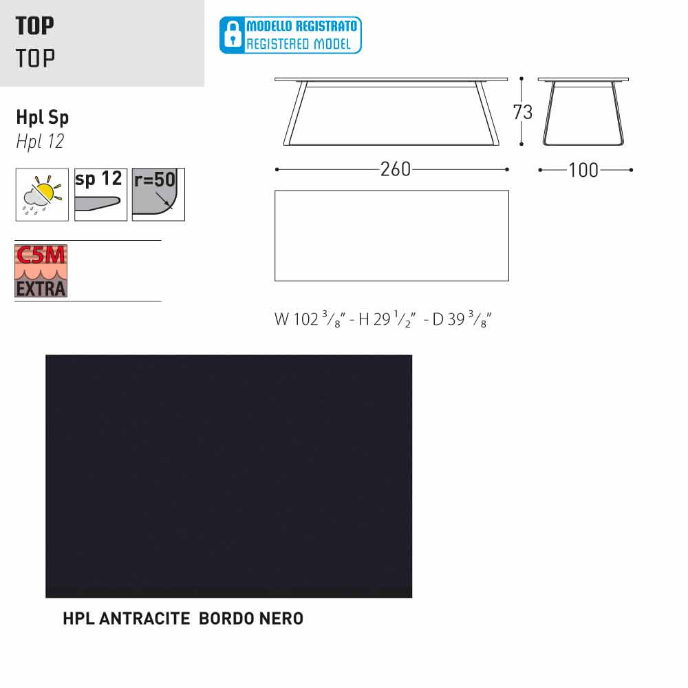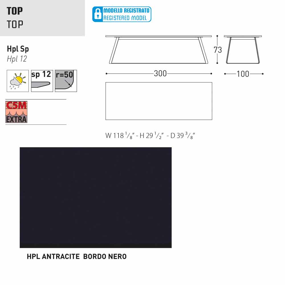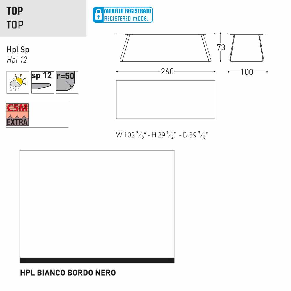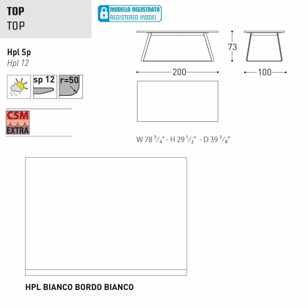 Recursos técnicos HPL : Laminados de alta pressão. Eles são feitos de várias camadas de papel (70%) impregnadas com resinas termofixas (30%) e compactadas por cerca de 45-50 minutos através da ação combinada de calor (a cerca de 150 graus) e alta pressão (superior a 7 MPa / Megapascal por metro quadrado.) O resultado é um produto estável, não reativo, não poroso e de alta densidade. Possui características físicas e químicas de alta resistência mecânica (excursão de temperatura controlada + 80 / -40 graus, por menos de 30 segundos em temperaturas extremas). Resiste à exposição à luz e variações de temperatura, mesmo em ambientes marinhos.