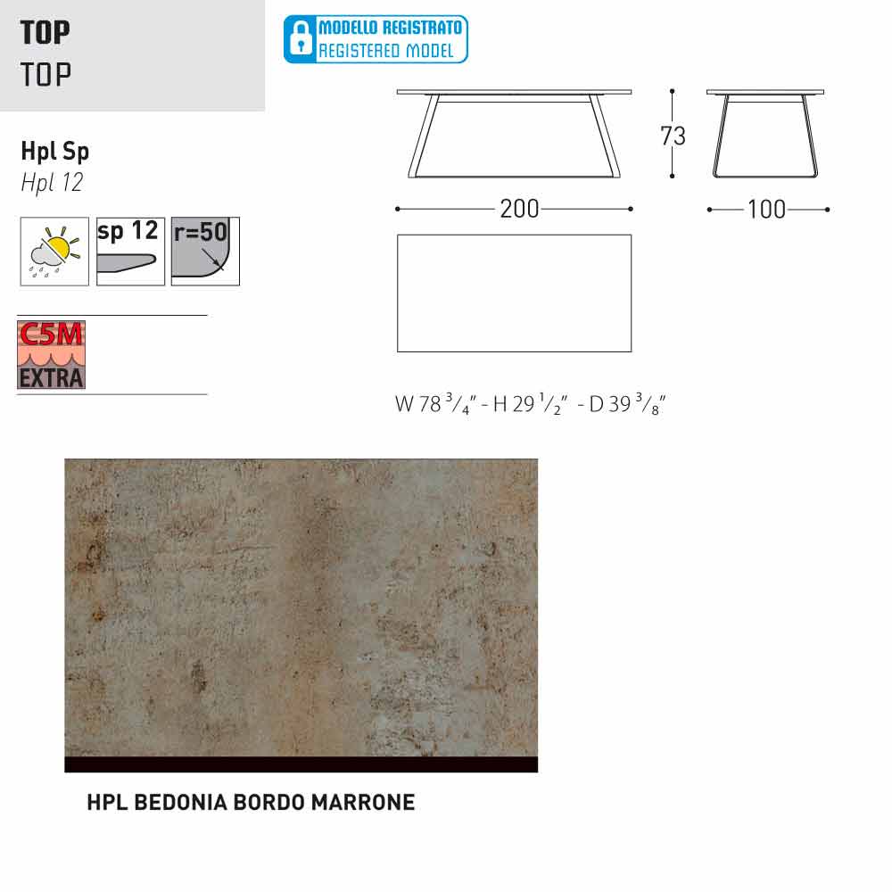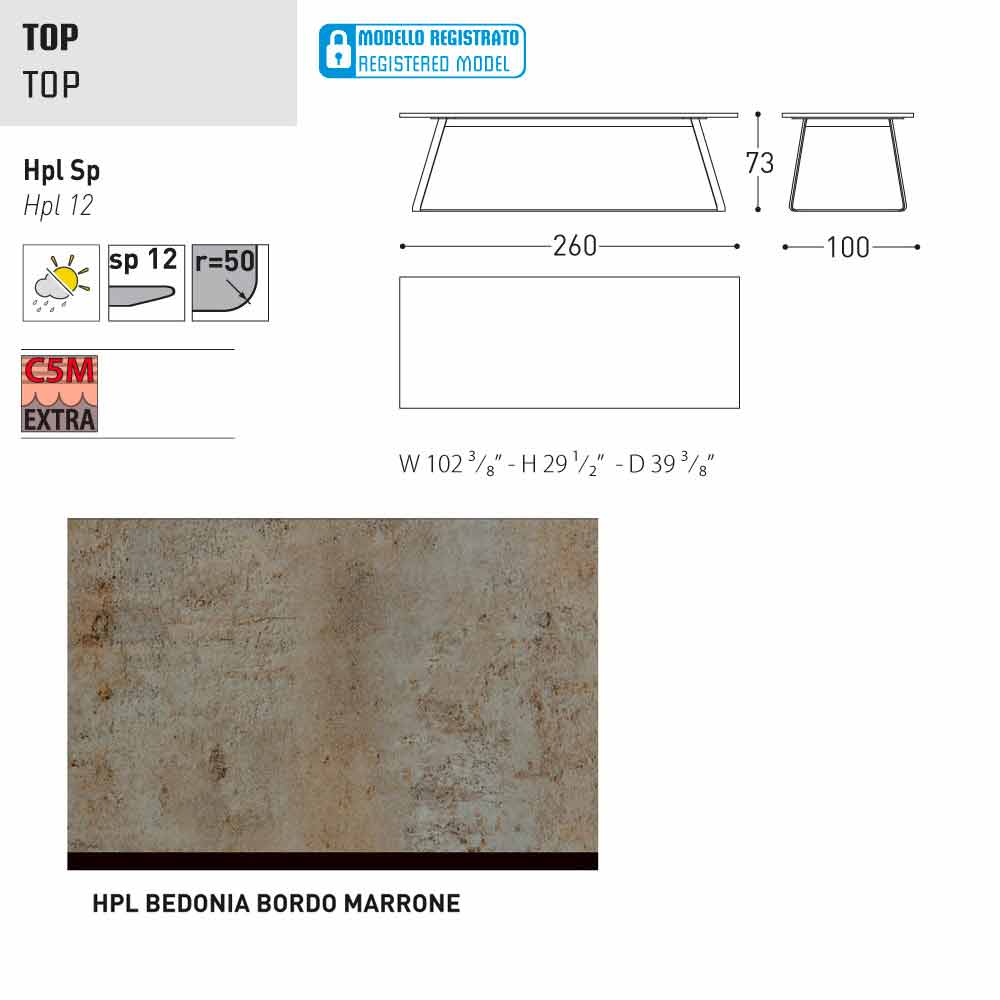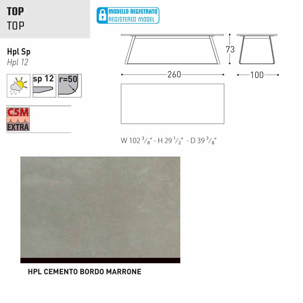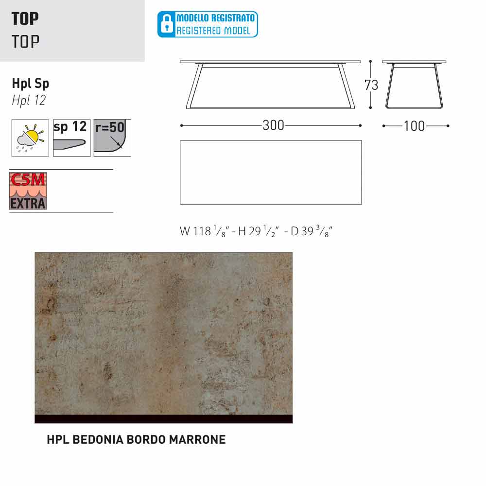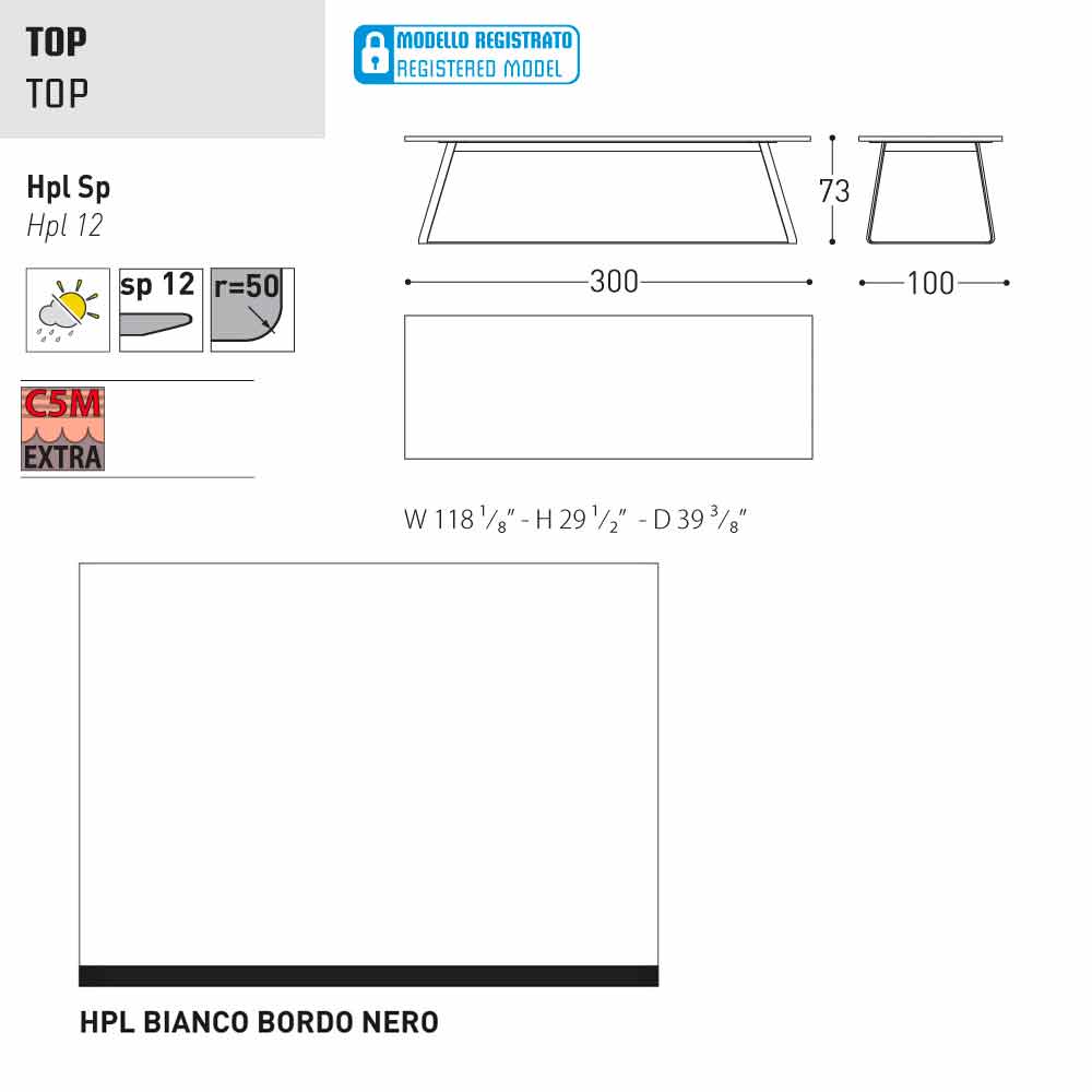 Recursos técnicos HPL : Laminados de alta pressão. Eles são feitos de várias camadas de papel (70%) impregnadas com resinas termofixas (30%) e compactadas por cerca de 45-50 minutos através da ação combinada de calor (a cerca de 150 graus) e alta pressão (superior a 7 MPa / Megapascal por metro quadrado.) O resultado é um produto estável, não reativo, não poroso e de alta densidade. Possui características físicas e químicas de alta resistência mecânica (excursão de temperatura controlada + 80 / -40 graus, por menos de 30 segundos em temperaturas extremas). Resiste à exposição à luz e variações de temperatura, mesmo em ambientes marinhos.
