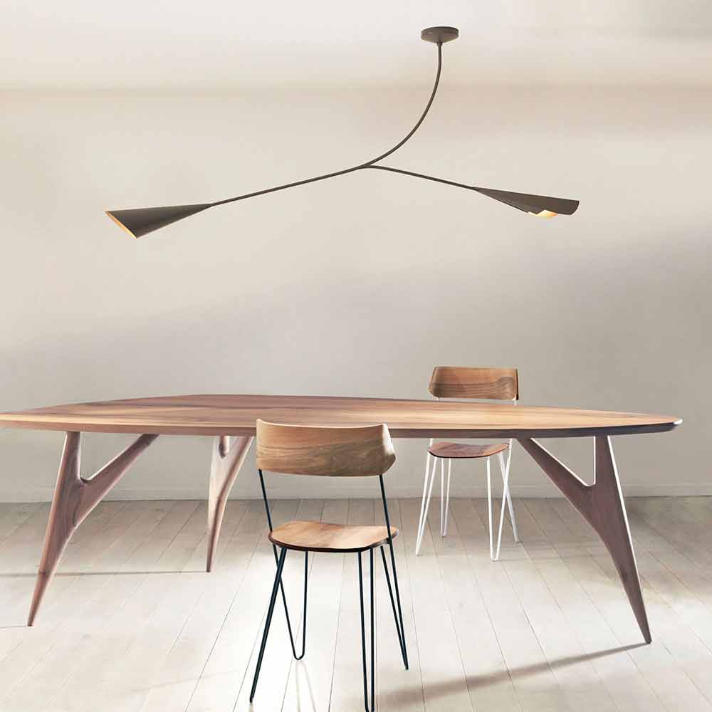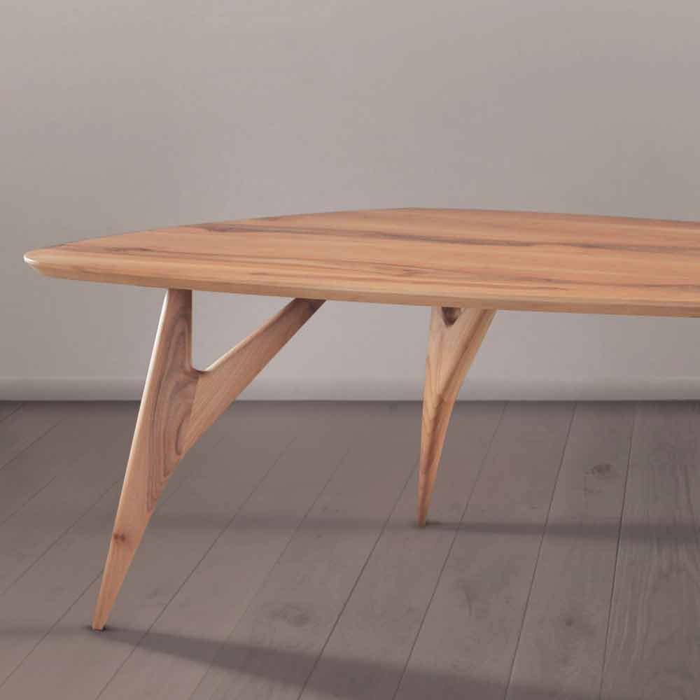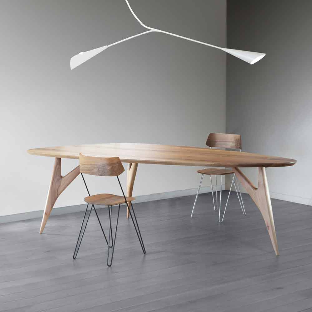 Através da forma particular das suas três pernas e da sua bifurcação original, esta mesa transmite uma sensação de leveza e, juntamente com a forma de vela suave do tampo, cria uma atmosfera capaz de conquistar qualquer espaço. Nasceu assim uma solução de mobiliário única, ideal para quem procura um estilo criativo que não passe despercebido dentro da divisão, conseguindo completar o mobiliário com o seu toque caprichoso e criando uma harmonia perfeita com os elementos que o rodeiam.