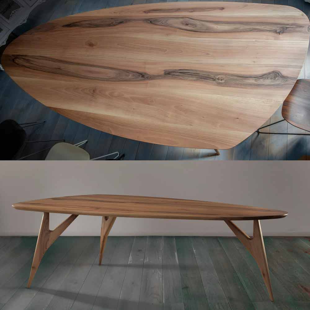 Mesa de jantar para sala ou cozinha artesanal na Itália com tampo e estrutura em nogueira maciça .