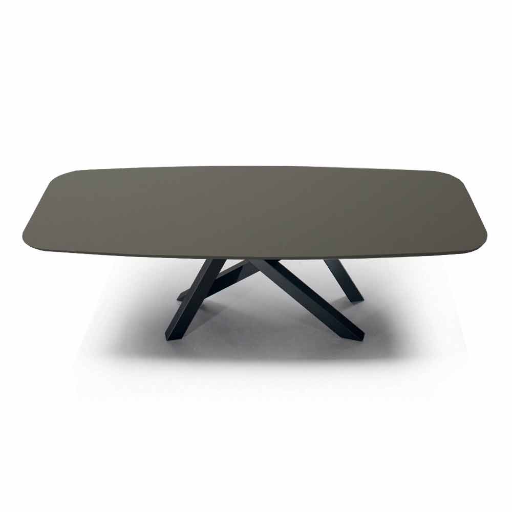 Mesa de jantar em forma de barril fabricada na Itália em fino fenix e aço lacado.