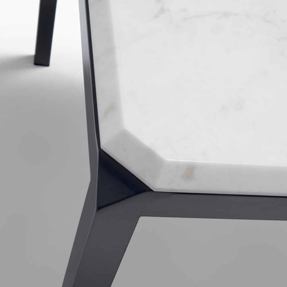 Base em aço pintado de preto perolado e tampo em mármore Michelangelo branco.