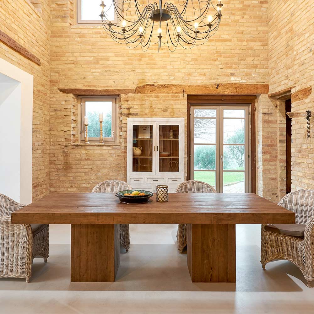 NOTAS: A teca e outras madeiras nobres são madeiras de enorme resistência e durabilidade ao longo do tempo, mas sujeitas a influências externas como o clima. Pequenas fissuras, superfícies irregulares, manchas, tampões de compensação são a sua peculiaridade e também representam o seu valor. Móveis quase “únicos” e sempre diferentes de um jogo para outro.