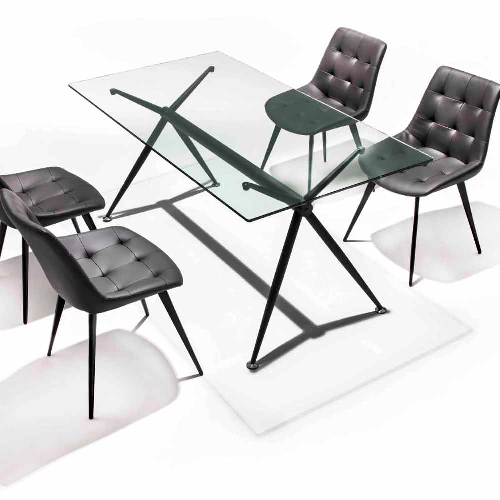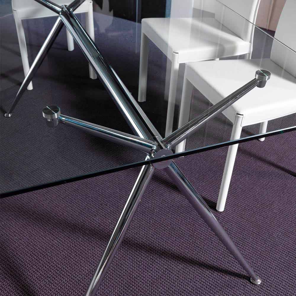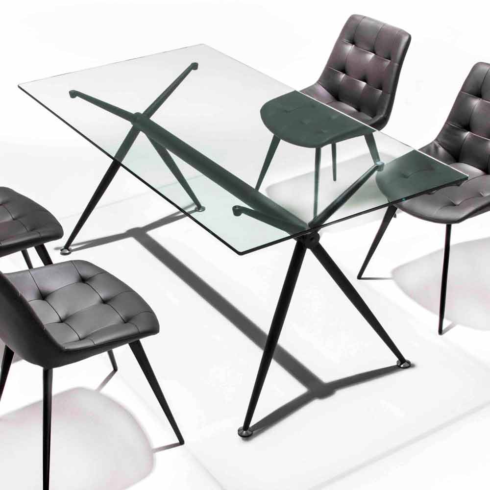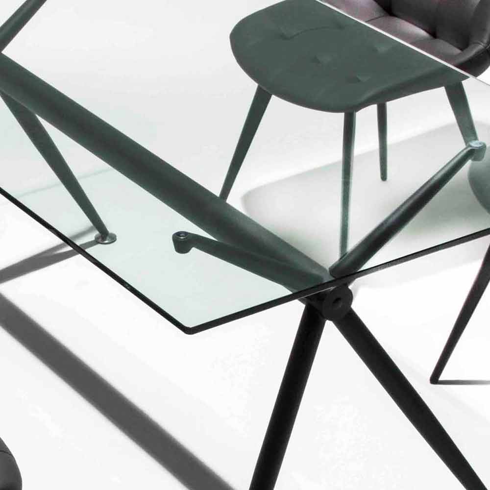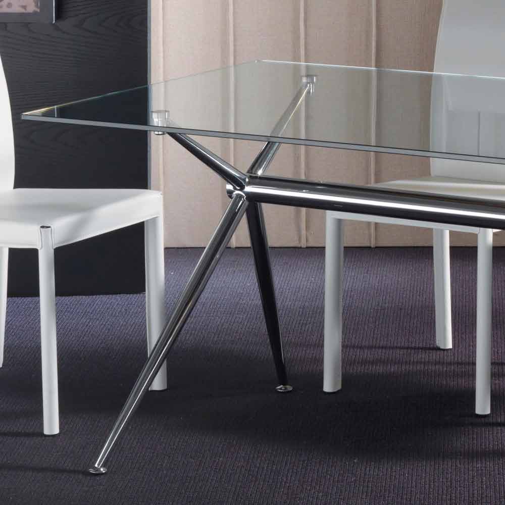 A estrutura é em aço, o tampo em vidro temperado transparente.