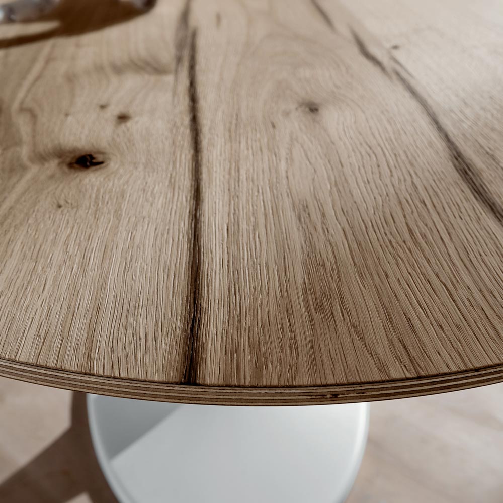 forte personalidade moderna e criativa . Seu ponto forte é representado pela base em mármore sintético que, além de oferecer excelente estabilidade à mesa, confere ao produto sua singularidade juntamente com o imponente tampo em madeira que completa o resultado final com um