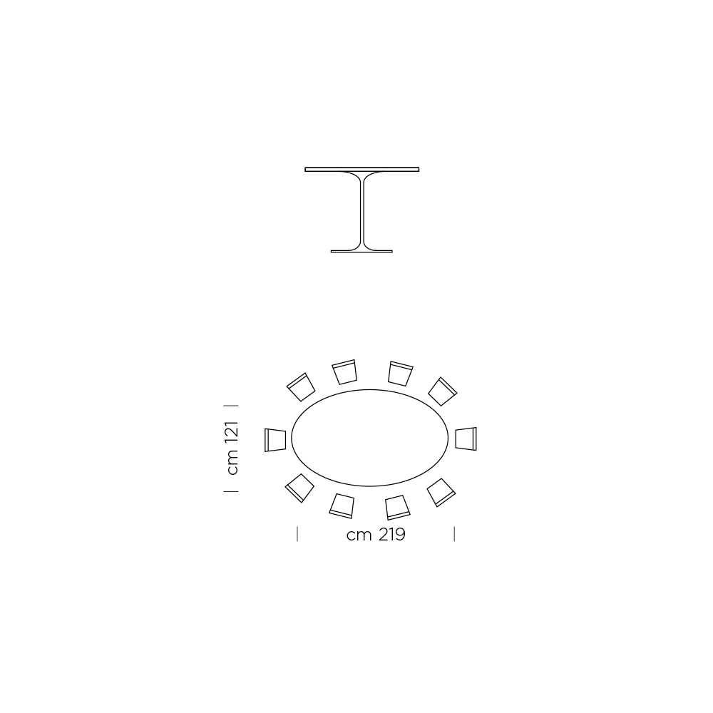 - C 219 x P 121 x A 74 cm (10 lugares);
