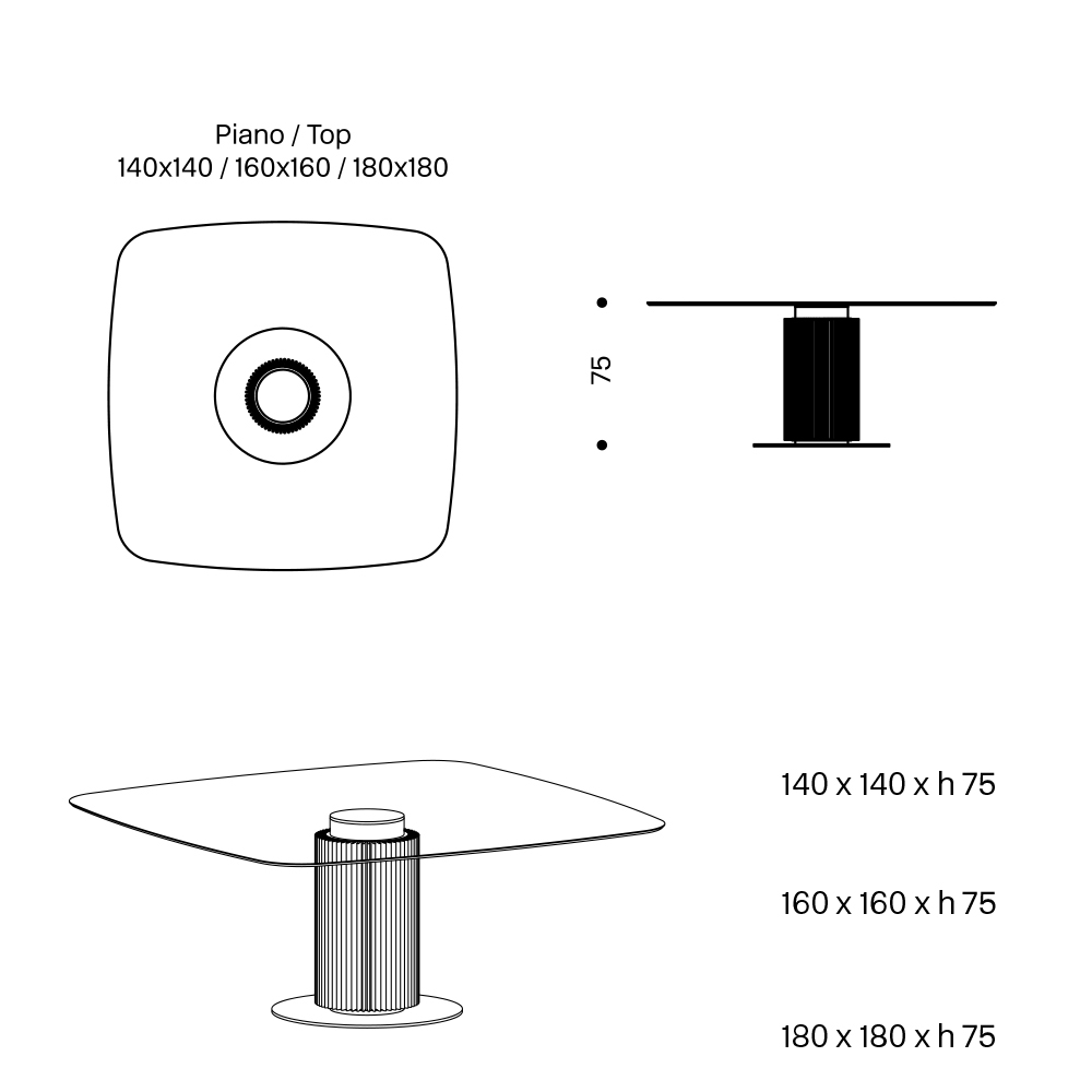 NB : a mesa também está disponível com tampo redondo ou retangular.